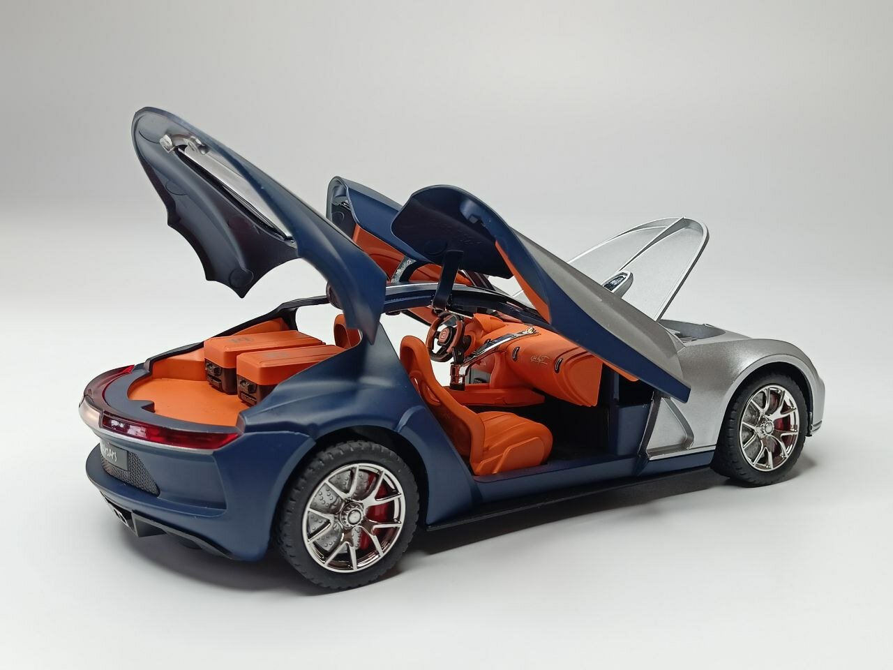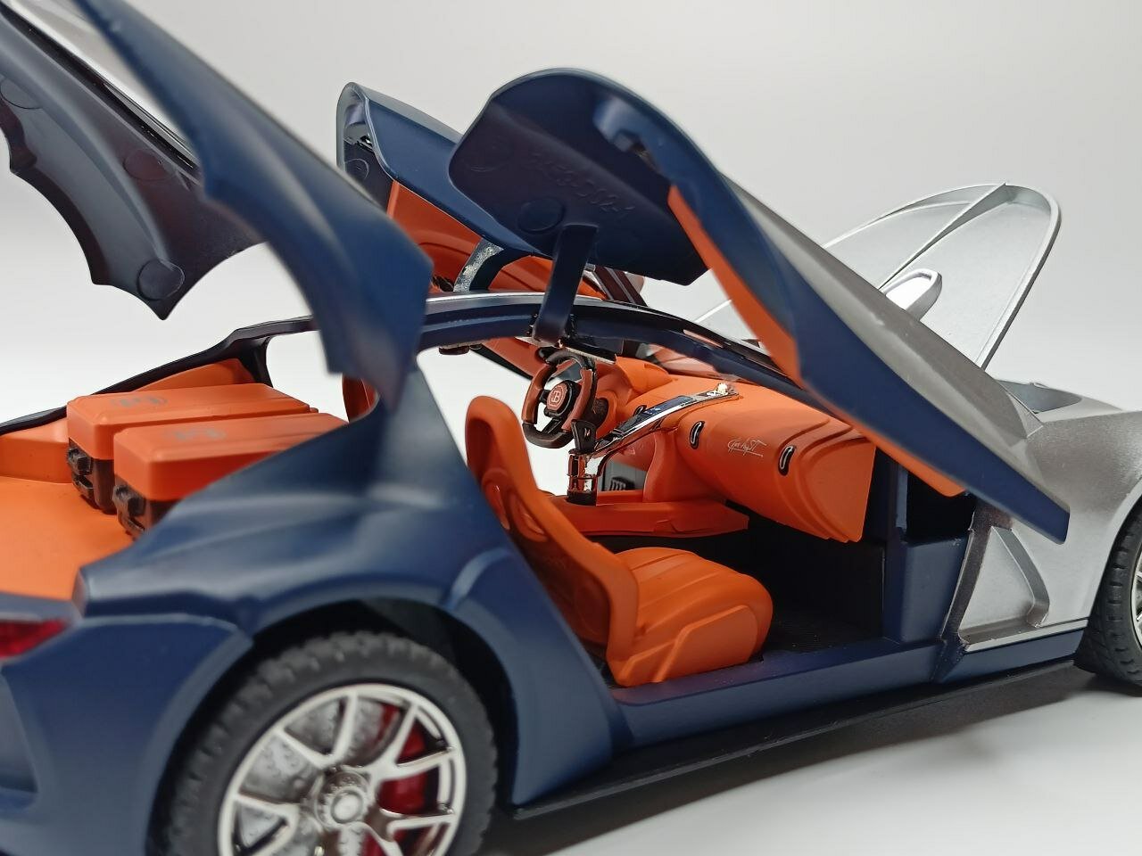 СохранитьКоллекционная машинка игрушка металлическая Bugatti для мальчиков масштабная модель 1:24 серебристый синий интересное: