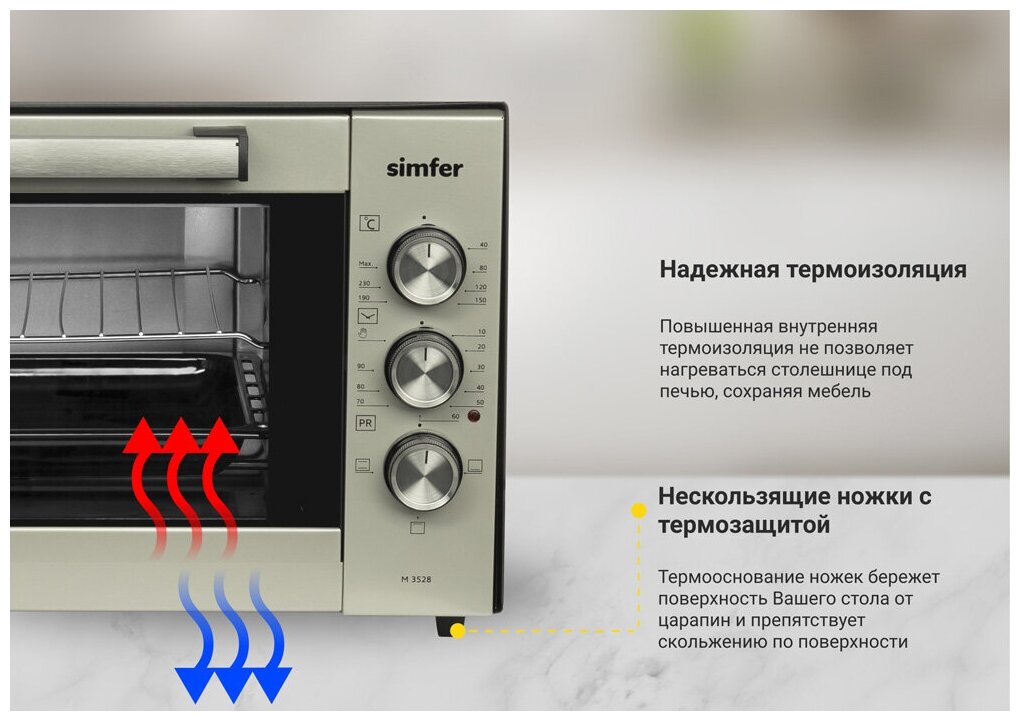 Мини-печь Simfer M3528 серия Classic, 3 режима работы, верхний и нижний нагрев