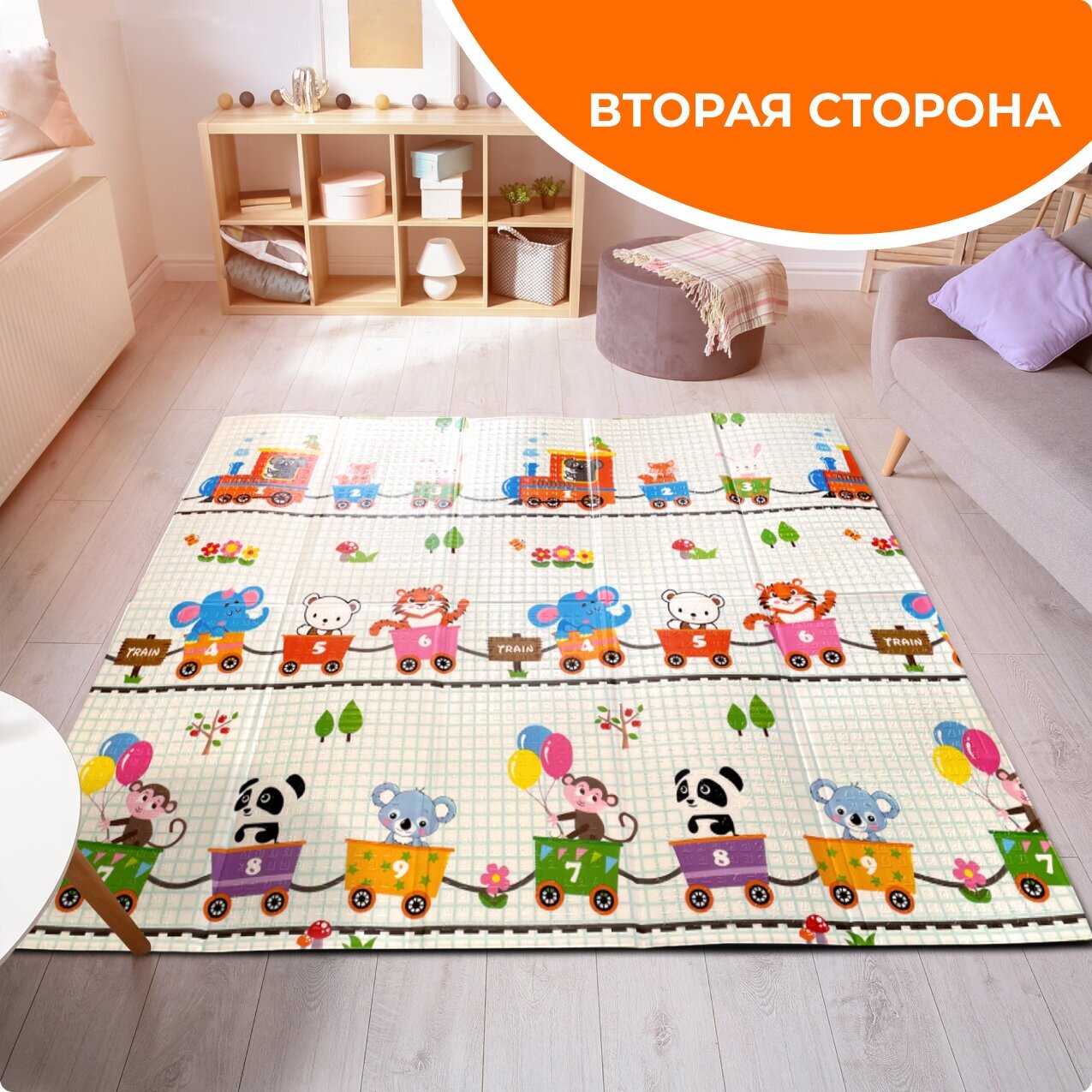 Купить Детский коврик для ползания складной двухсторонний игровой термоковрик Mamagoods 150х200 "Поезд и жирафы"