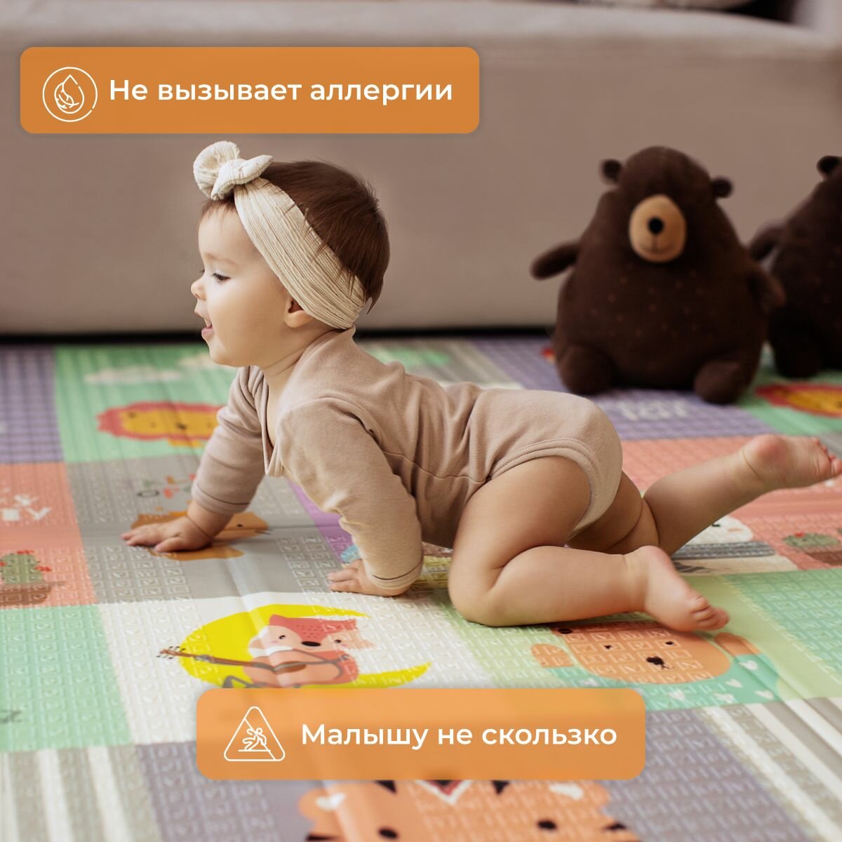 Детский коврик для ползания складной двухсторонний игровой термоковрик Mamagoods 150х200 Медведи и зверята