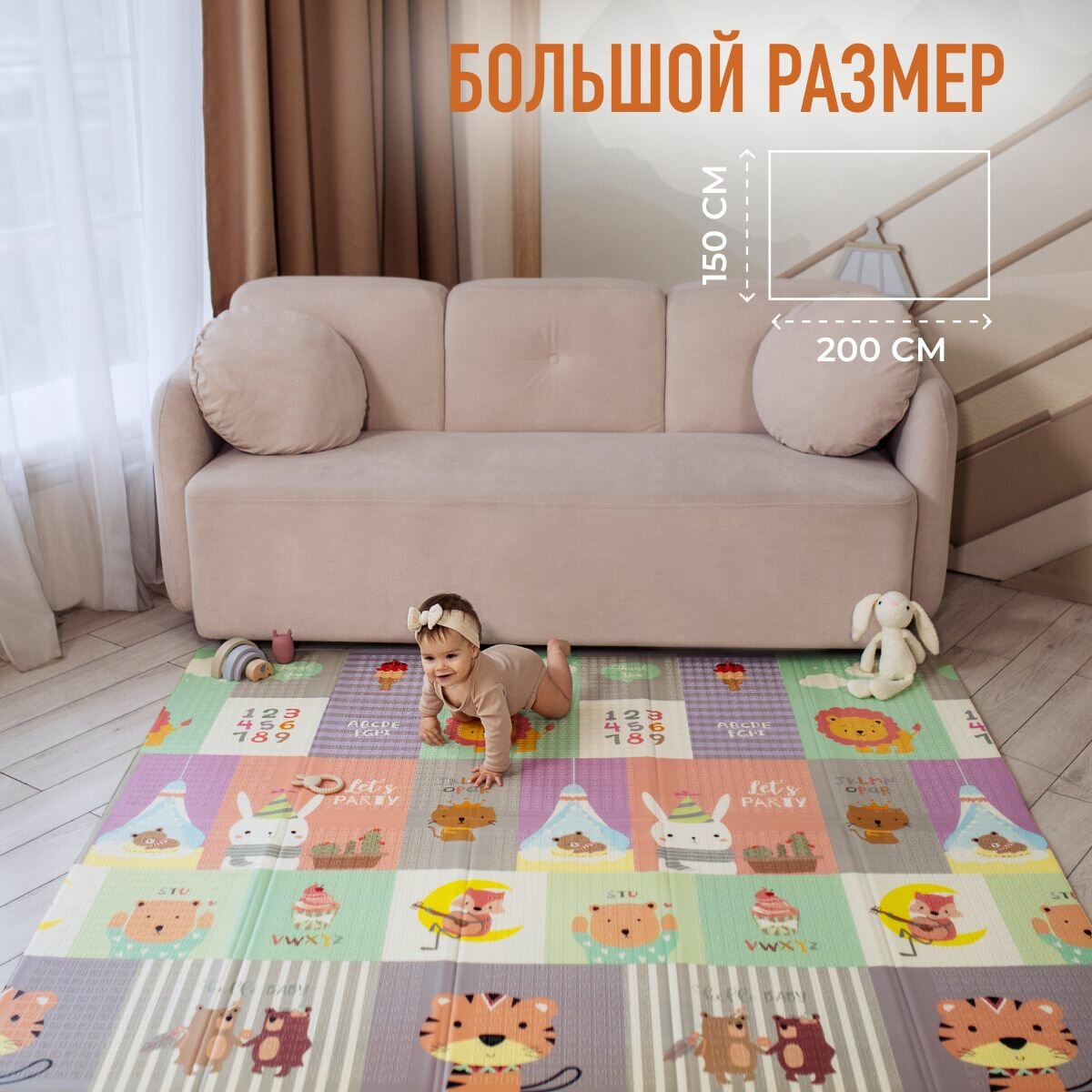 Коврик детский игровой 150х200 "Медведи и жирафы