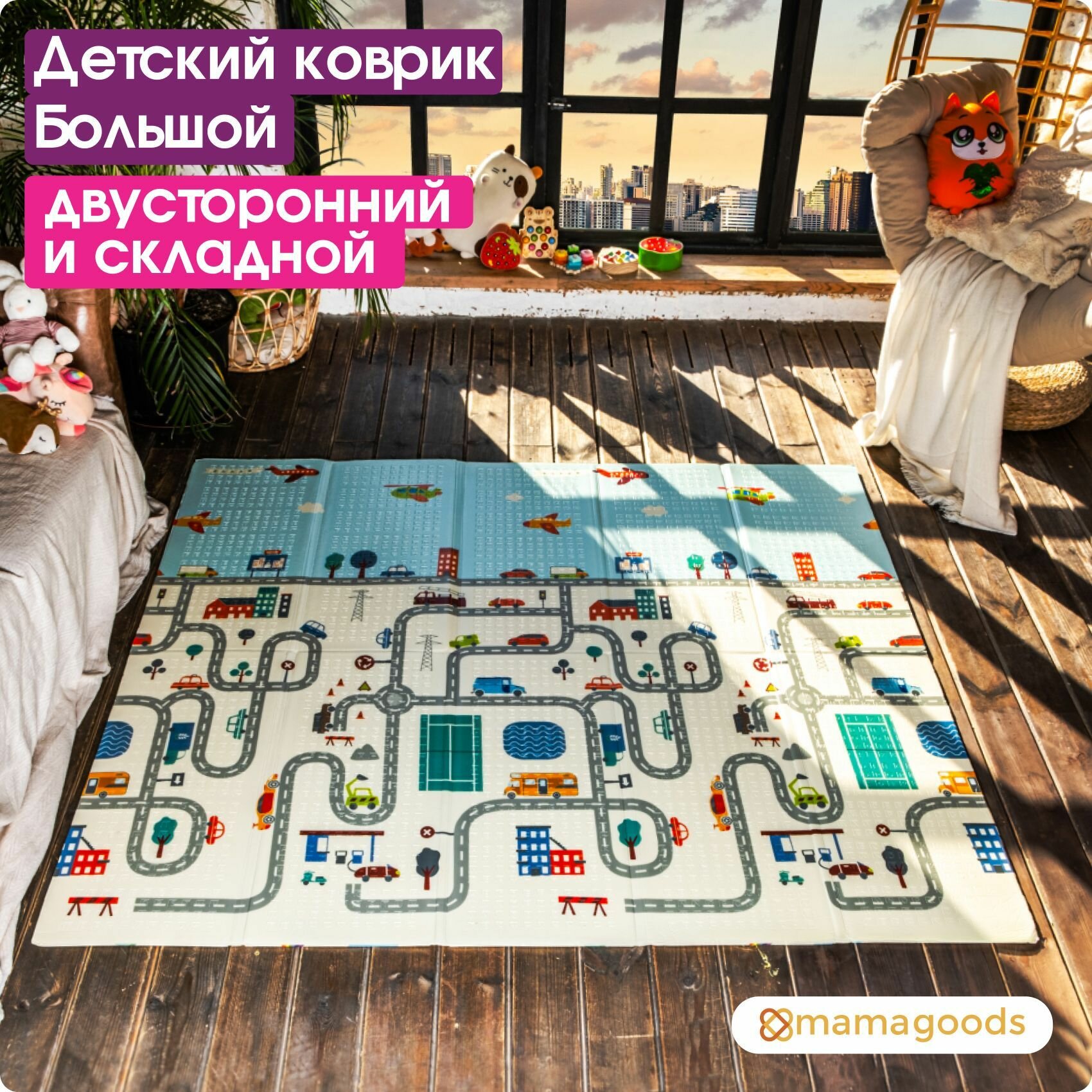 Детский коврик для ползания складной двухсторонний игровой термоковрик Mamagoods 150х200 см Дороги и город