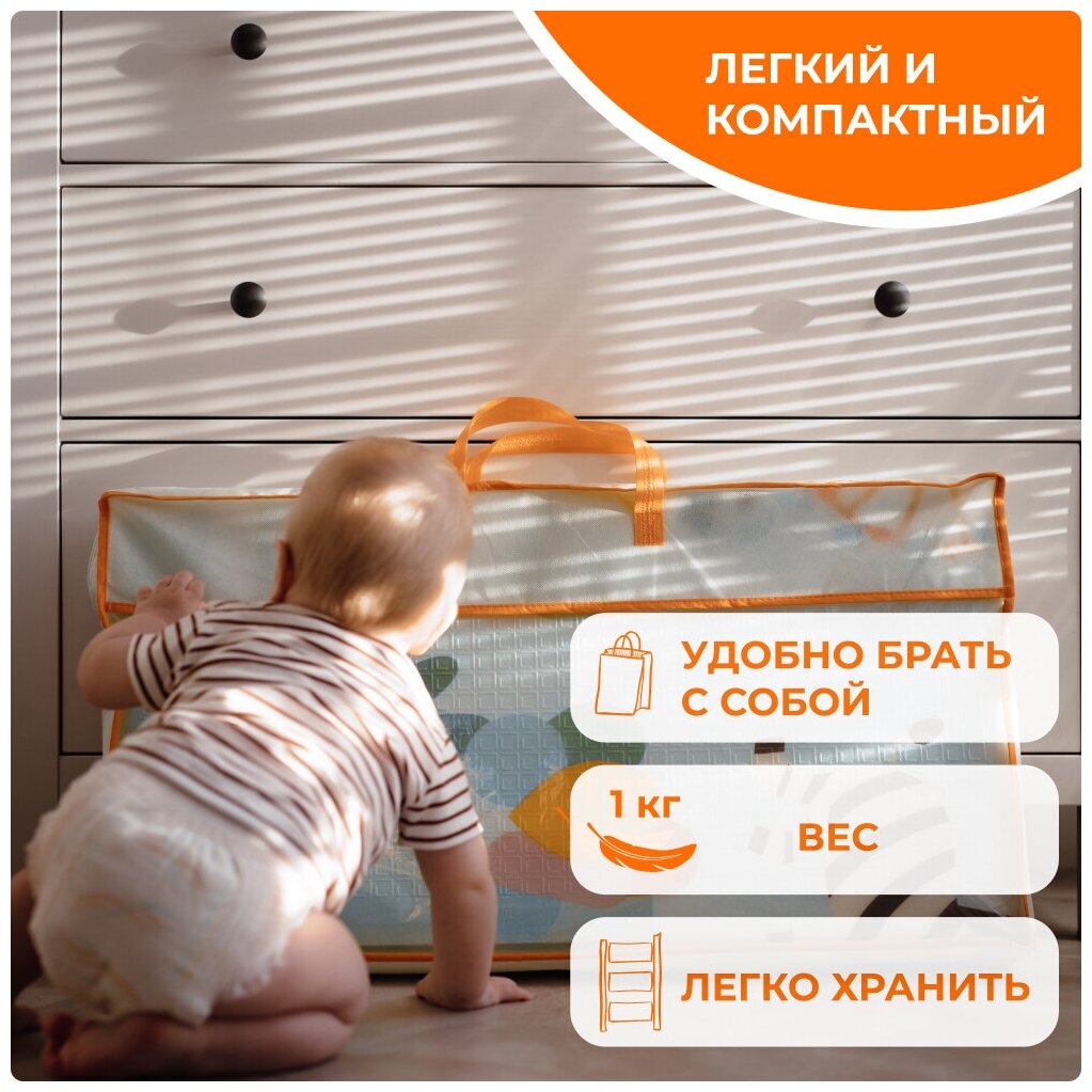 Детский коврик для ползания складной двухсторонний игровой термоковрик Mamagoods 150х200 "Поезд и жирафы"