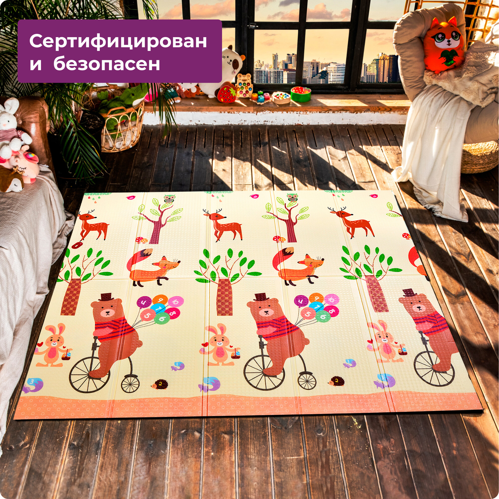 Коврик детский игровой 150х200 "Город и жирафы"