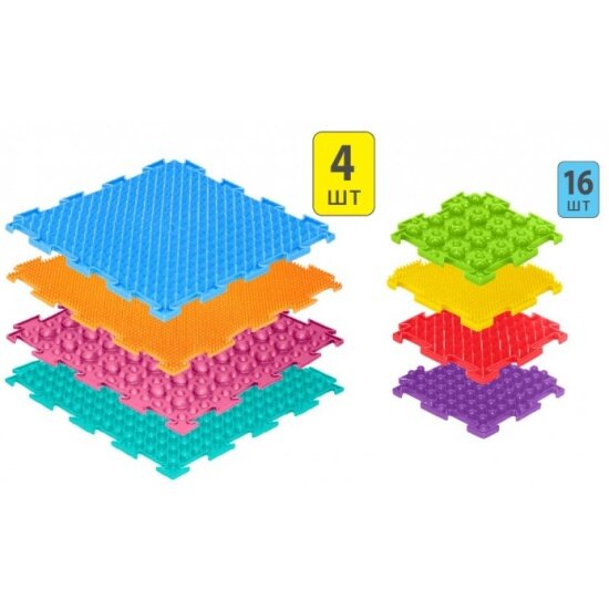 | Комплектация | 16 ковриков мЕньшего размера 12,5 см - 4 «Мини-Трава» (мягкий), 4 «Мини-Шипы» (мягкий), 4 «Мини-Камешки» (мягкий), 4 «Мини-Льдинки» (мягкий) и 4 коврика большего размера (25 см) - 1 «Трава» (мягкий), 1 «Шипы» (мягкий), 1 «Камешки» (мягкий), 1 «Льдинки» (мягкий). |