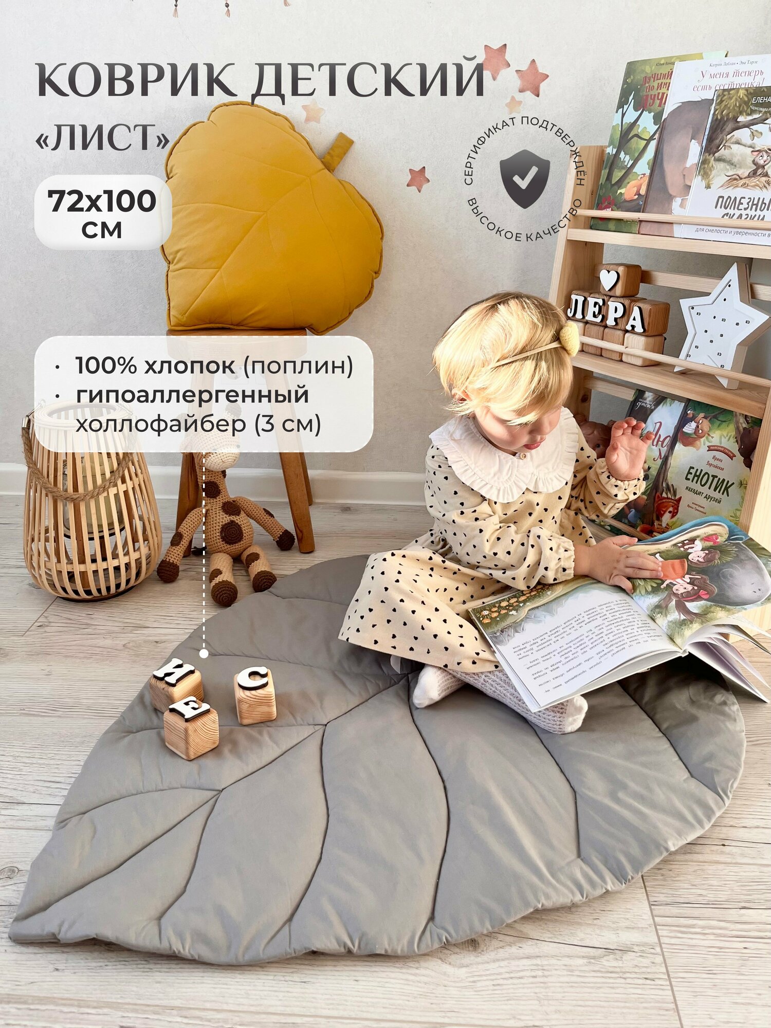 Купить Коврик детский "Лист", Childrens-Textiles, 72*100 см, 100% хлопок, цвет: серый