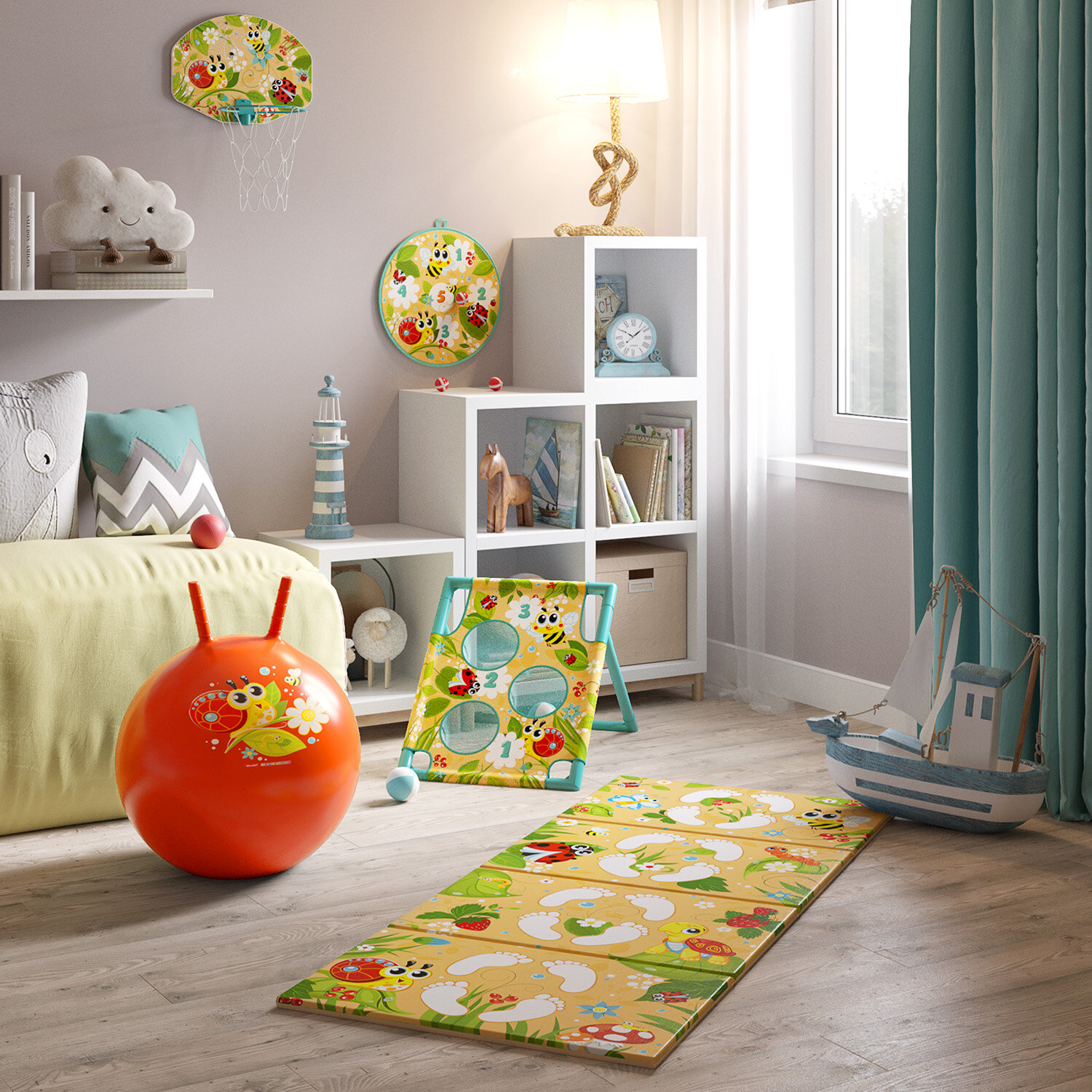 Коврик детский гимнастический Полоса препятствий, 60*144 см, 4 блока, цвет мятный, путешастики