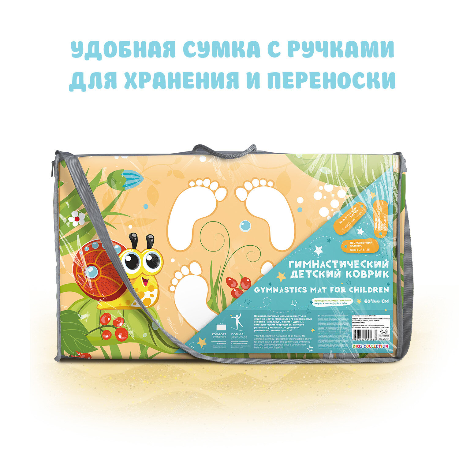 Купить Коврик детский гимнастический Топоножка, 60*144 см, 4 блока, цвет оранжевый, валиантики