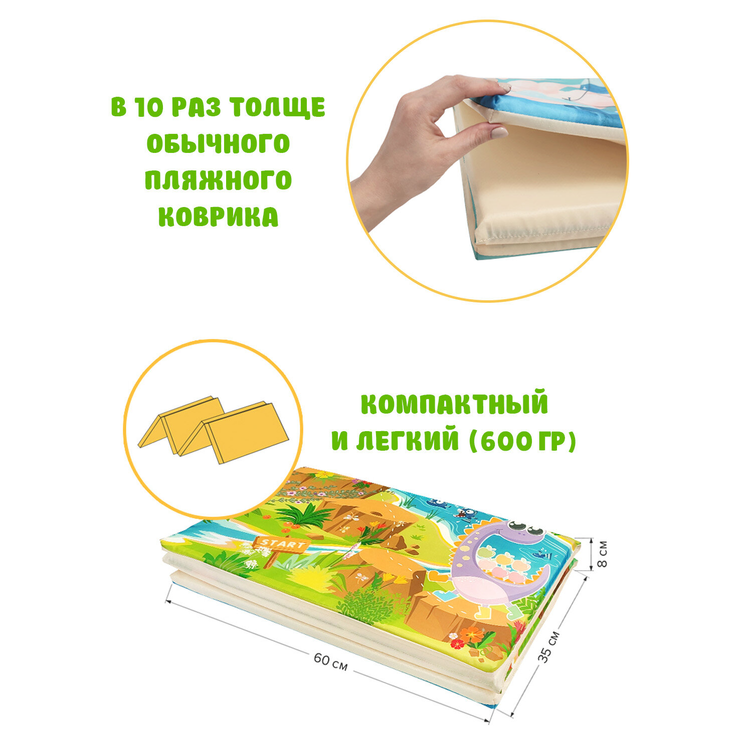 Коврик детский гимнастический Топоножка, 60*144 см, 4 блока, цвет мятный, путешастики