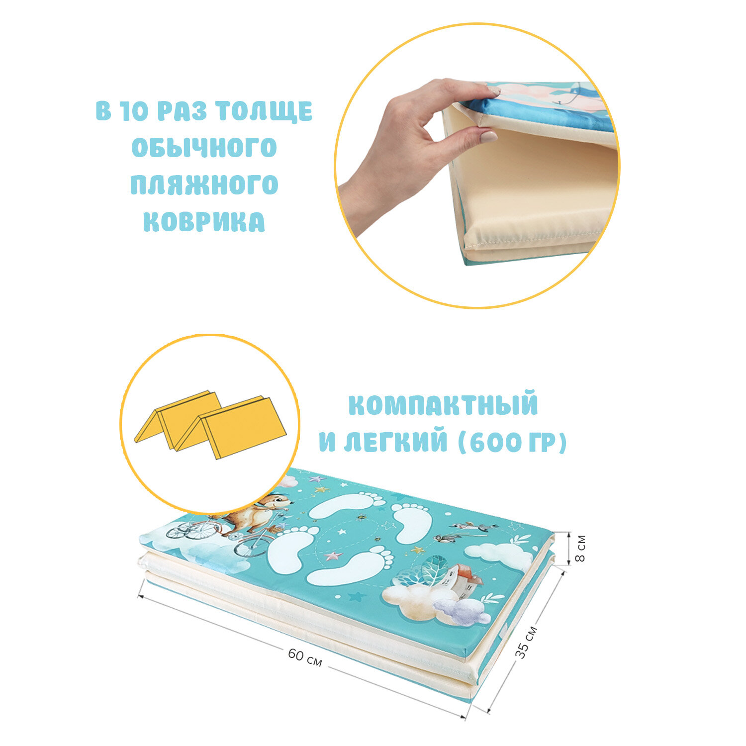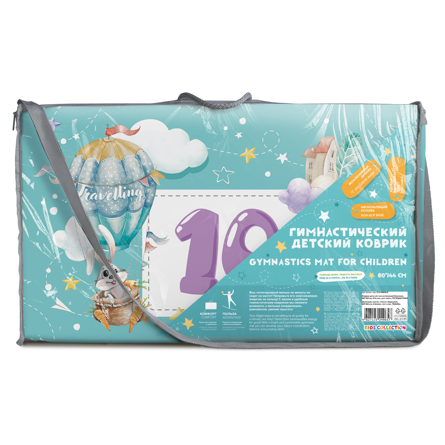 СохранитьКоврик детский гимнастический Топоножка, 60*144 см, 4 блока, цвет мятный, путешастики интересное: