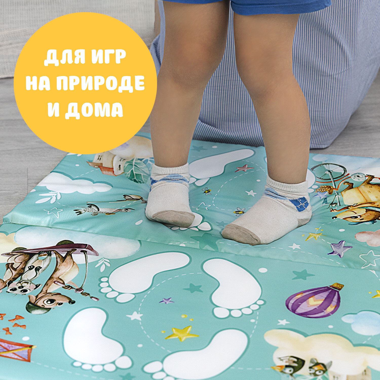 Коврик детский гимнастический Топоножка, 60*144 см, 4 блока, цвет синий, домашние животные