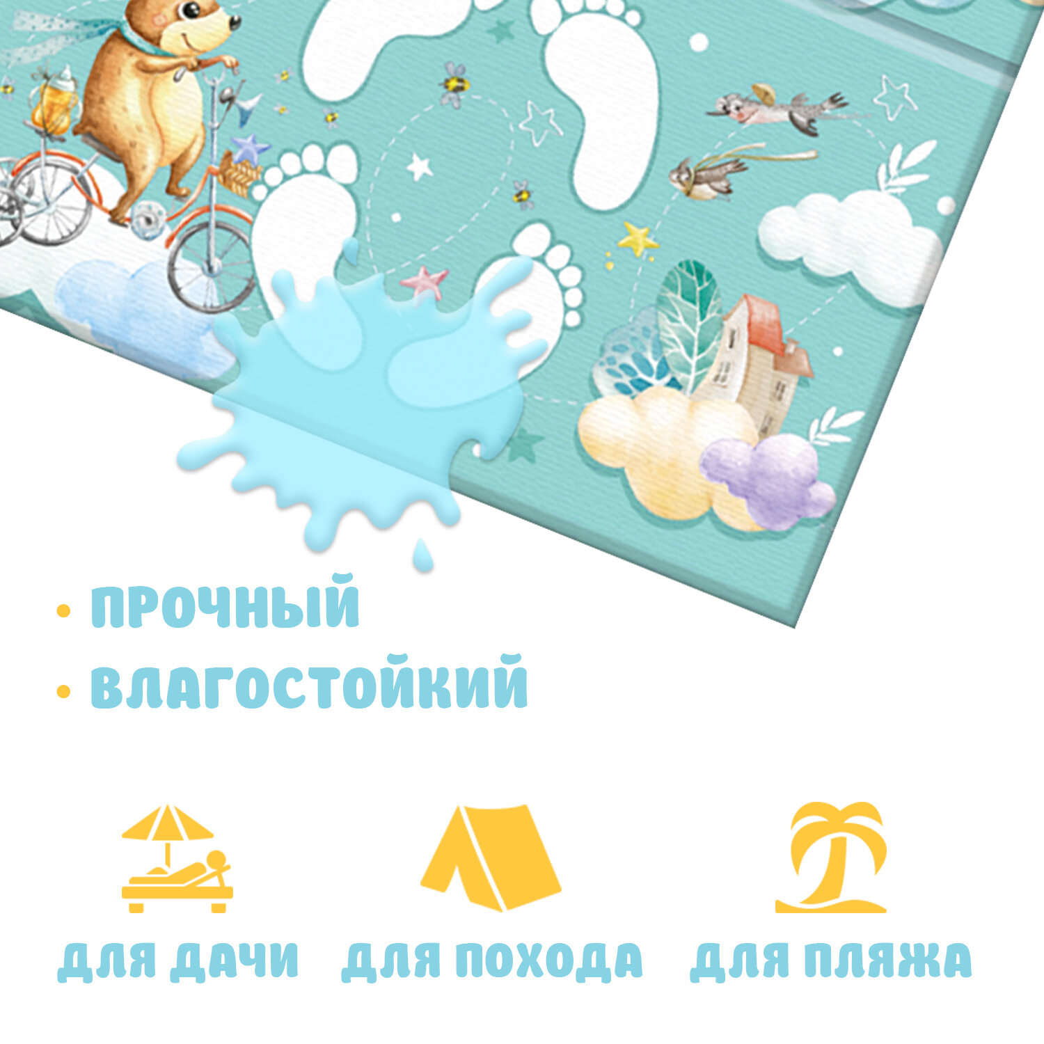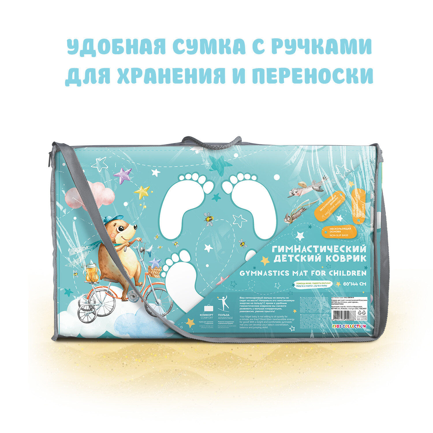 Купить Коврик детский гимнастический Топоножка, 60*144 см, 4 блока, цвет мятный, путешастики