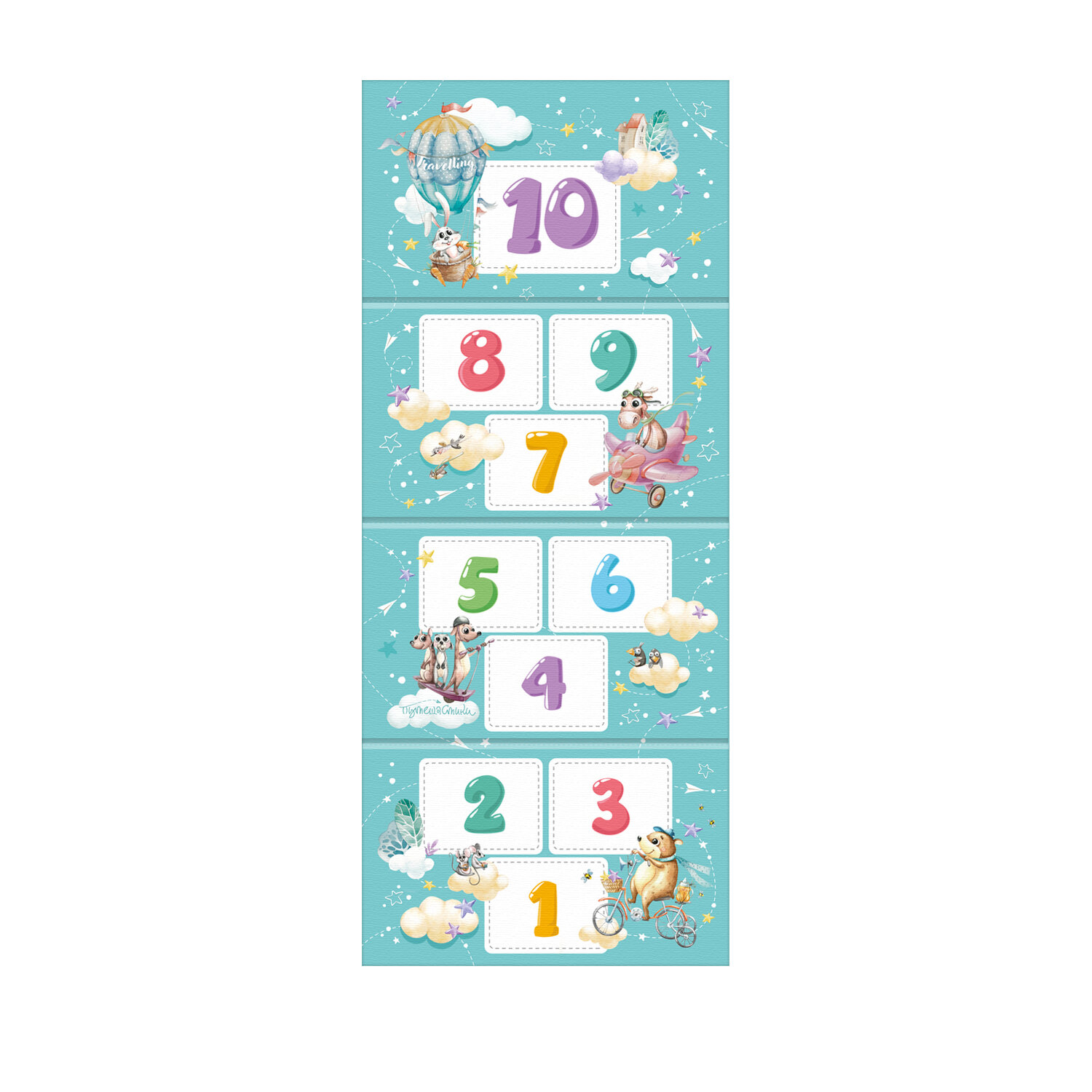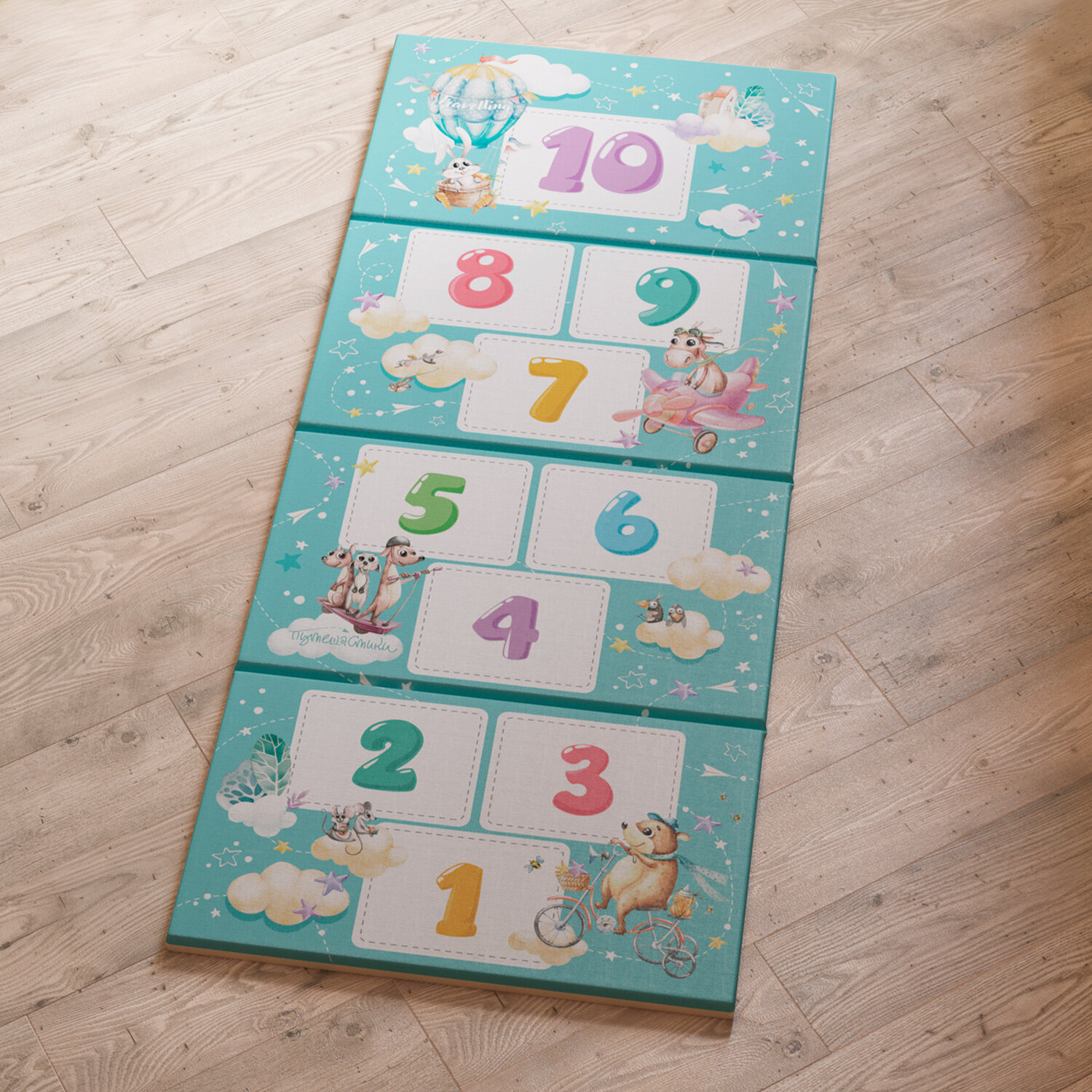 Коврик детский гимнастический Полоса препятствий, 60*144 см, 4 блока, цвет мятный, путешастики