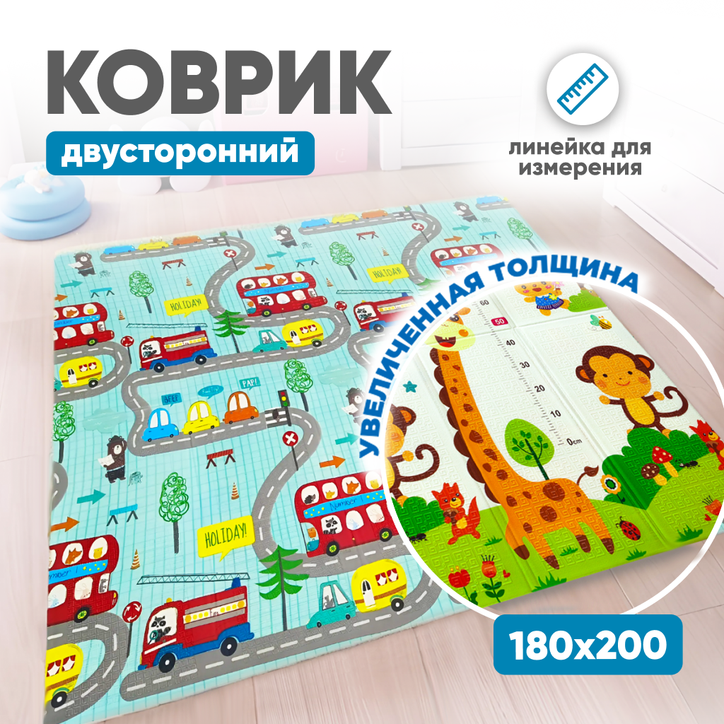 Купить Двухсторонний развивающий складной коврик для ползания детский игровой , пазл на пол 180х200
