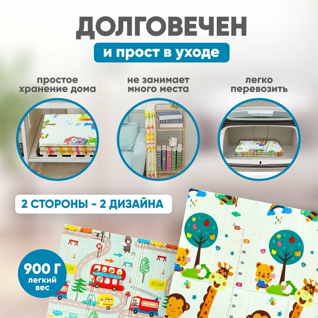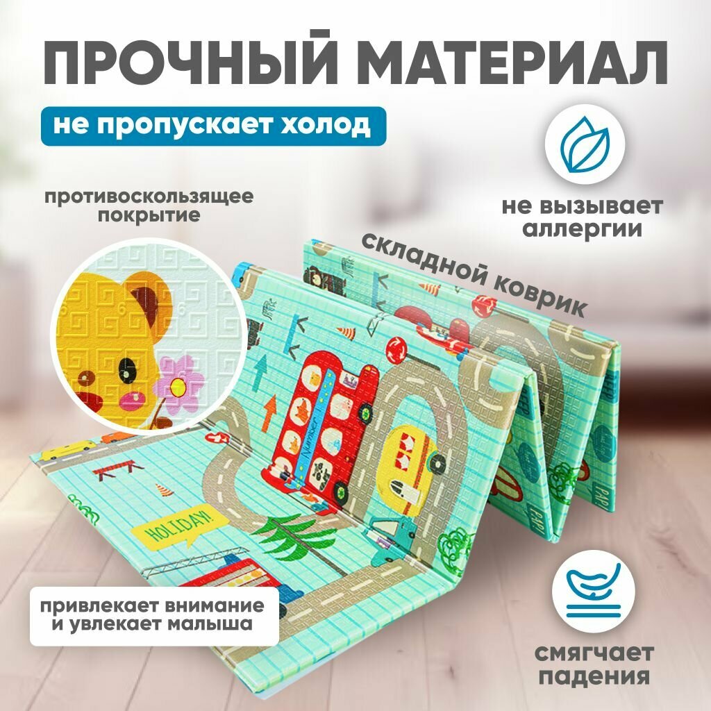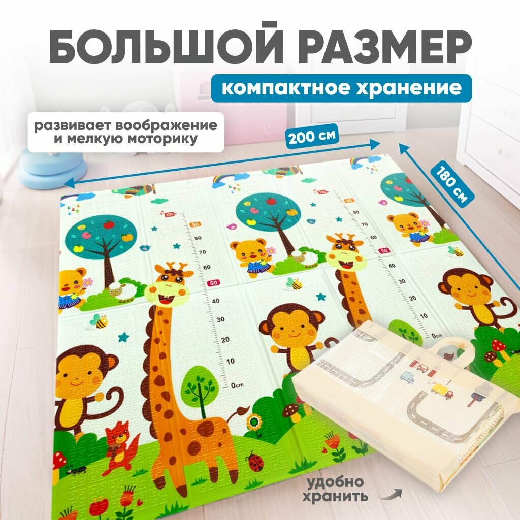 Двухсторонний развивающий складной коврик для ползания детский игровой , пазл на пол 180х200 интересное: