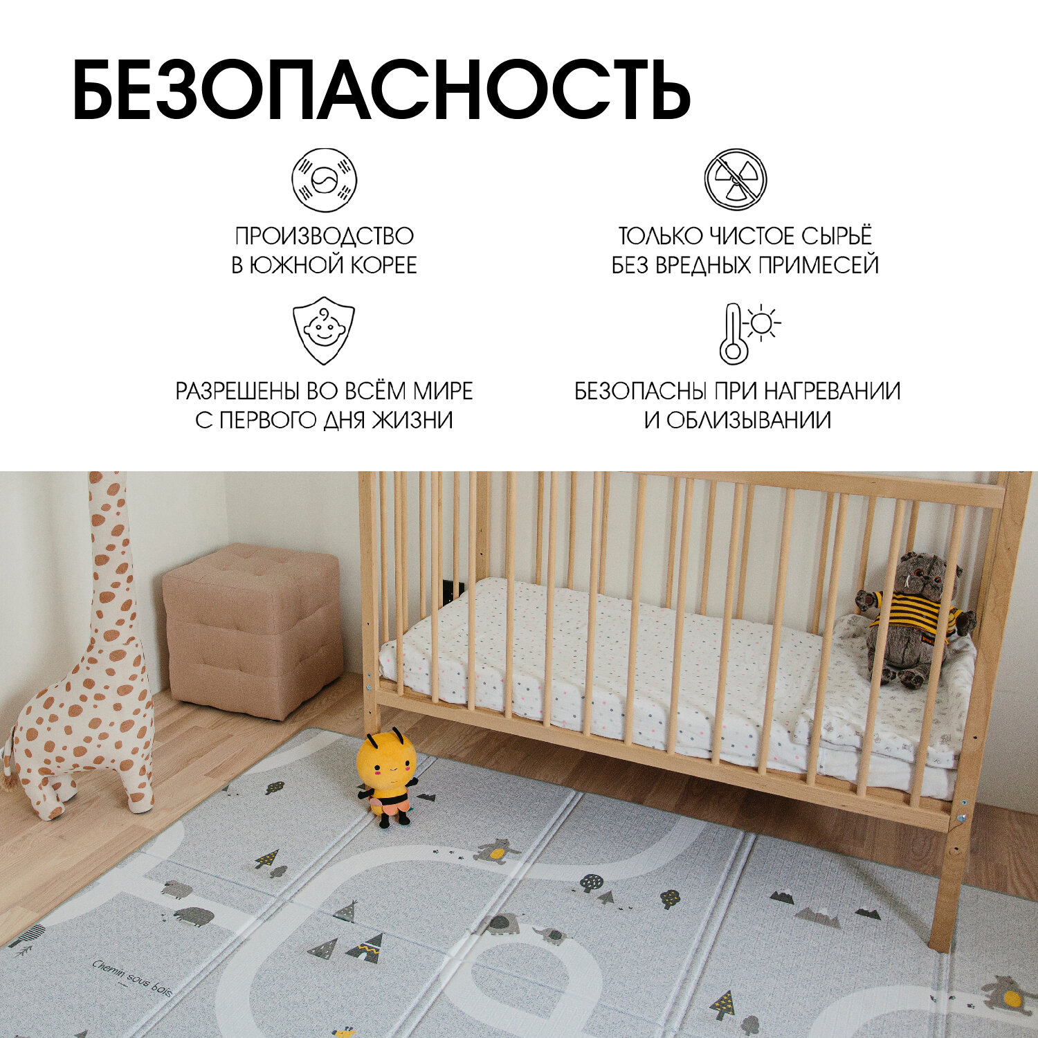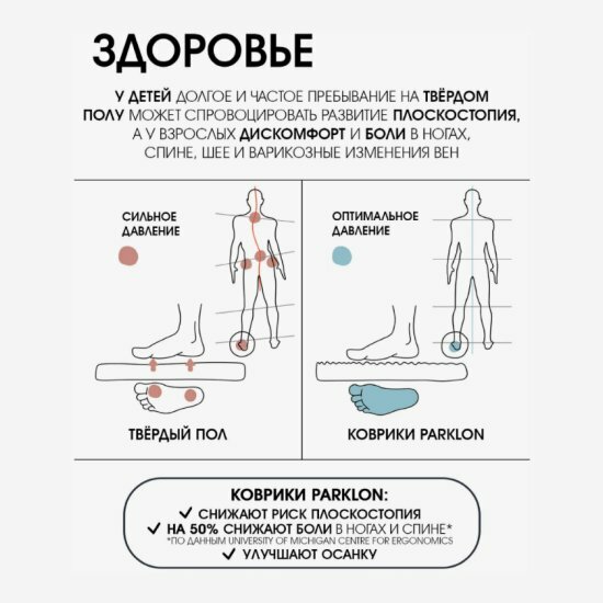 | Дополнительная информация | идеален для больших домов, когда за ребенком еще нужен постоянный присмотр, а у мамы есть дела; тогда мягкое, теплое и безопасное место для игр может перемещаться вместе с малышом в зависимости от маминых потребностей; для небольших квартир такой вариант тоже просто незаменим: дети с удовольствием помогают складывать и раскладывать коврик, игры концентрируются именно на нем |