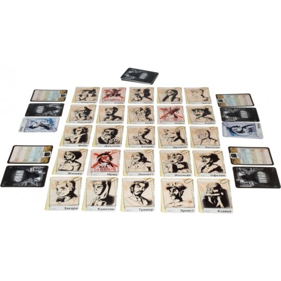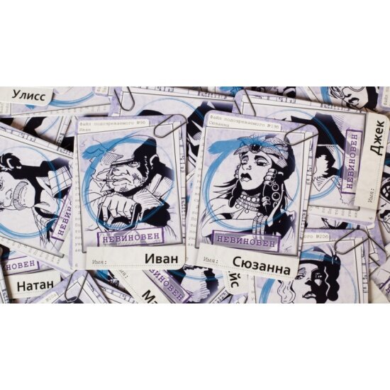 | Комплектация | 50 карт подозреваемых, 50 карт доказательств, 35 карт принадлежности, 30 жетонов, правила |