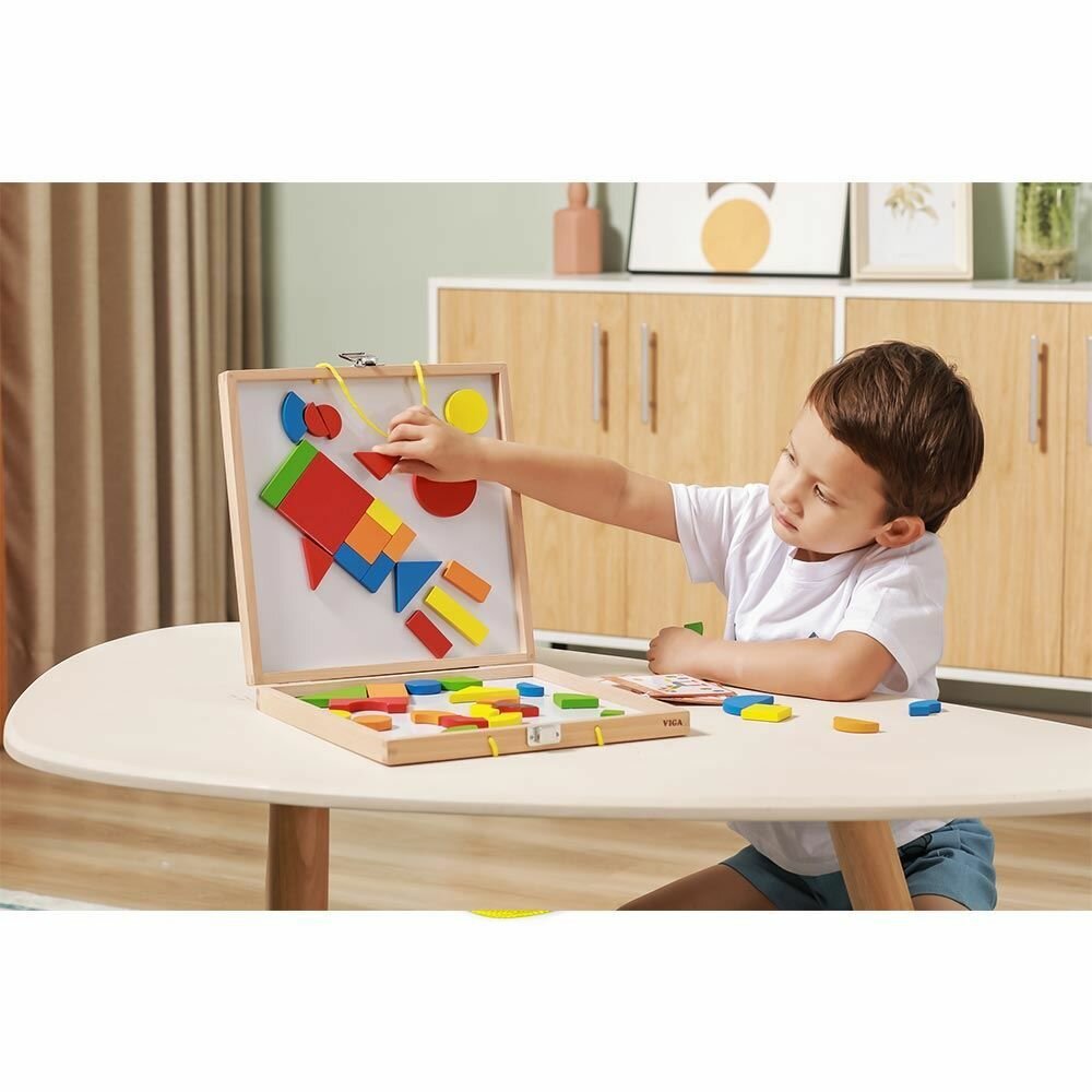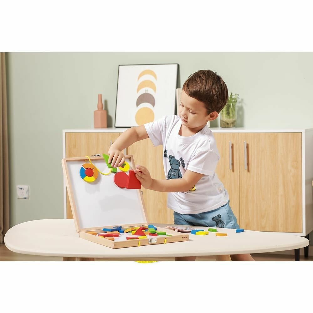 Купить Магнитная мозайка в чемодане 42 магнитные детали разных форм и цветов VIGA 59687