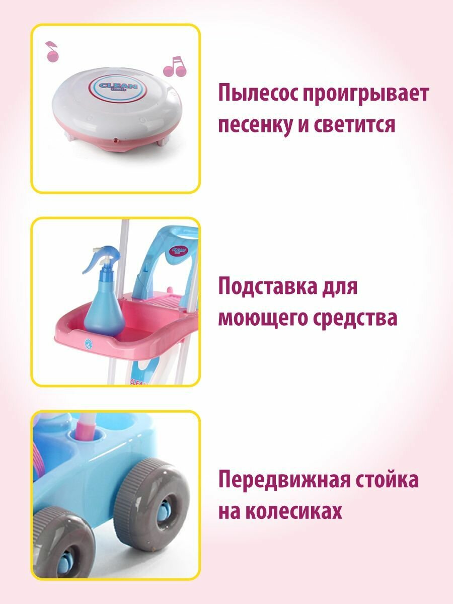 Детский игровой набор для уборки с пылесосом, щетками и совками, Veld Co / Игрушечная бытовая техника со светом и звуком, 130803