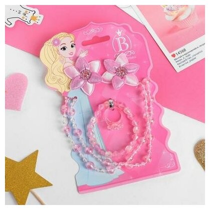 Комплект детский "Выбражулька" 5 предметов: 2 резинки, бусы, браслет, кольцо, цветочек, цвет розовый интересное:
