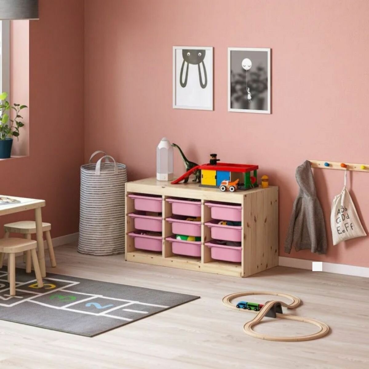 Контейнер для хранения икеа Труфаст, 42x30x23 см, розовый, 3 шт. Корзина для игрушек