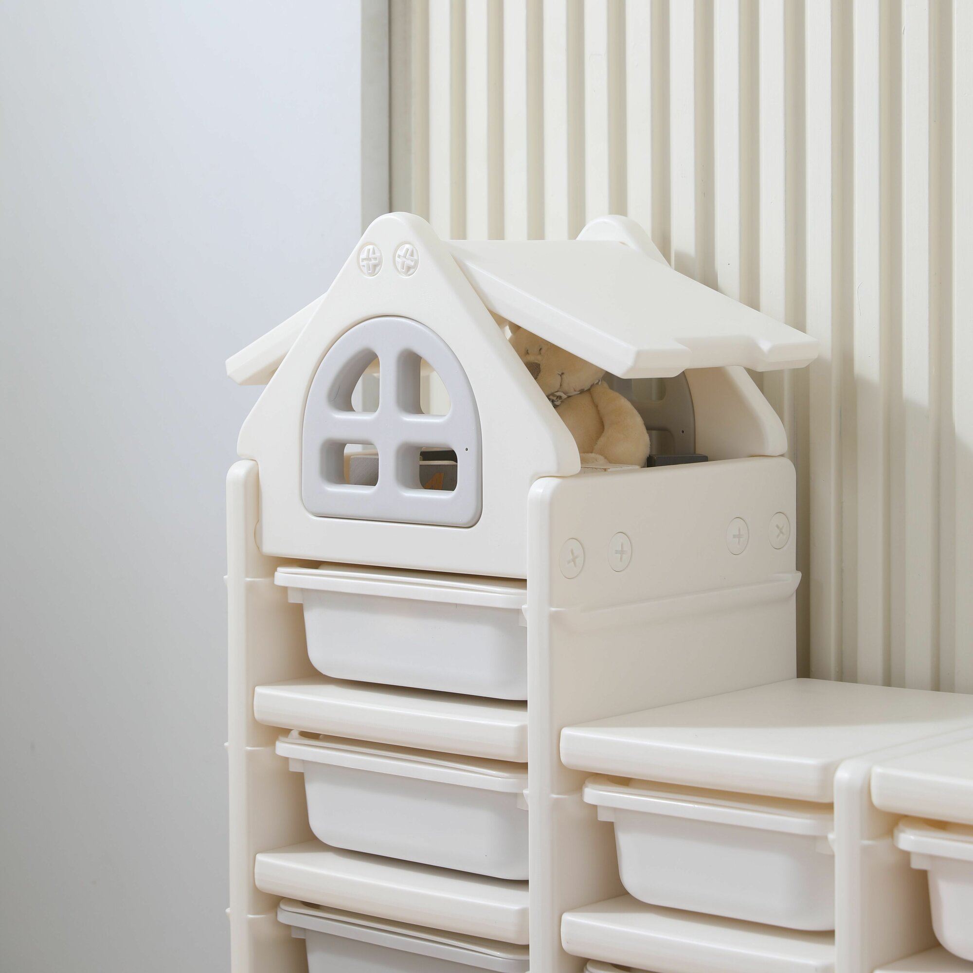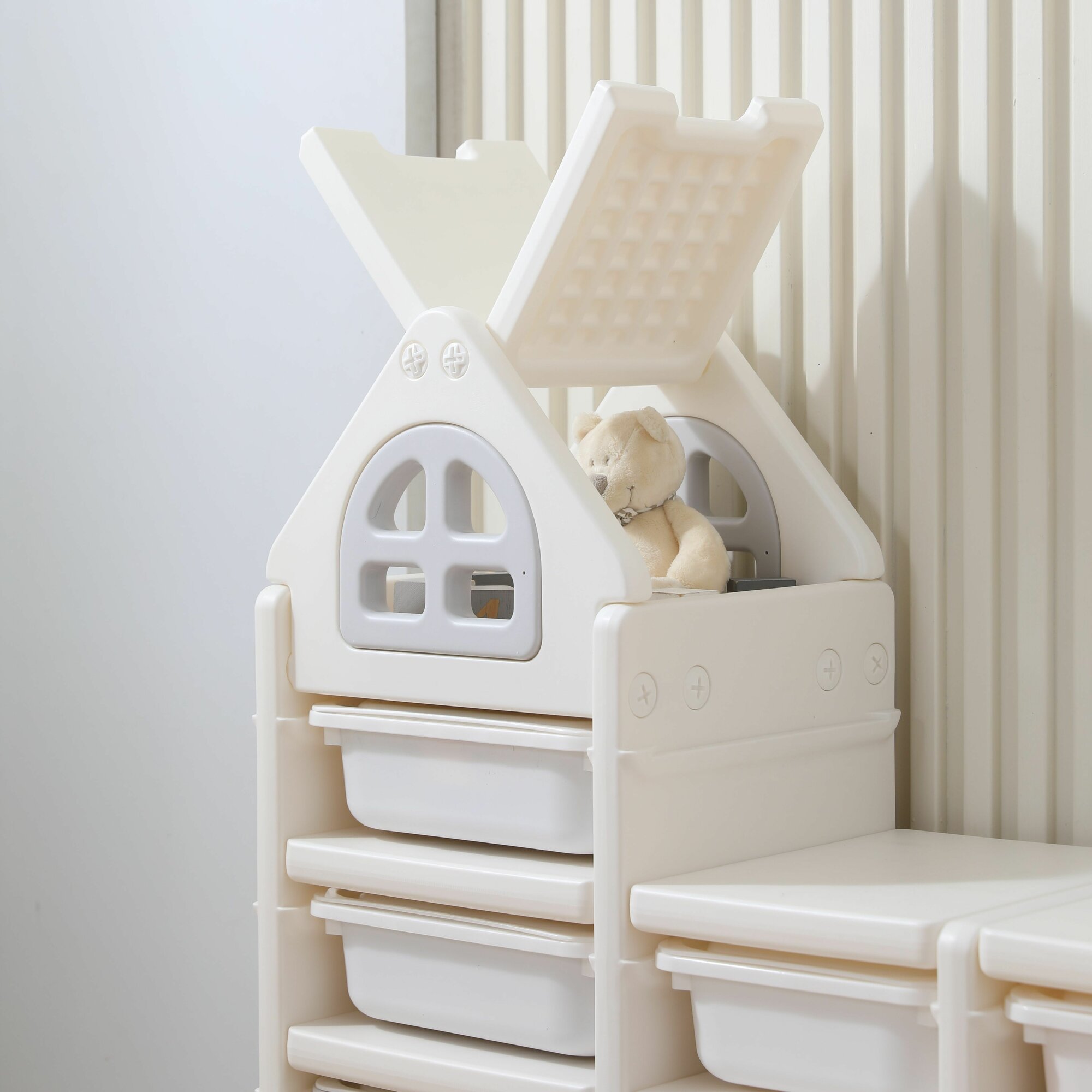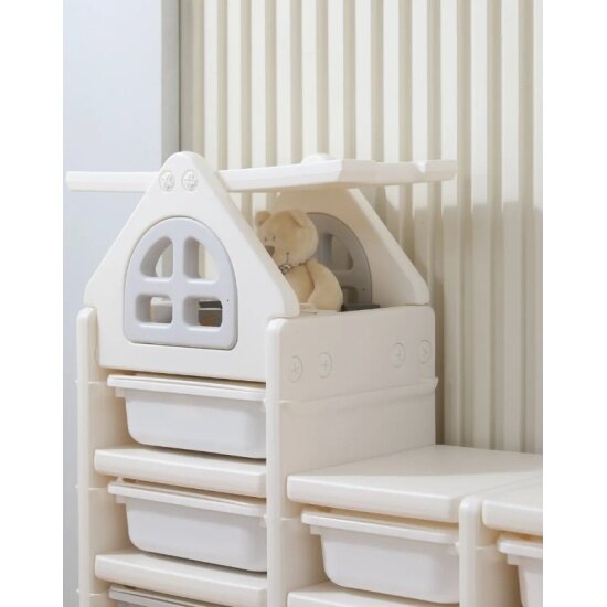 Стеллаж для игрушек UNIX Kids Whale White 3 ящика + полки, напольный в детскую комнату, пластиковый, белый