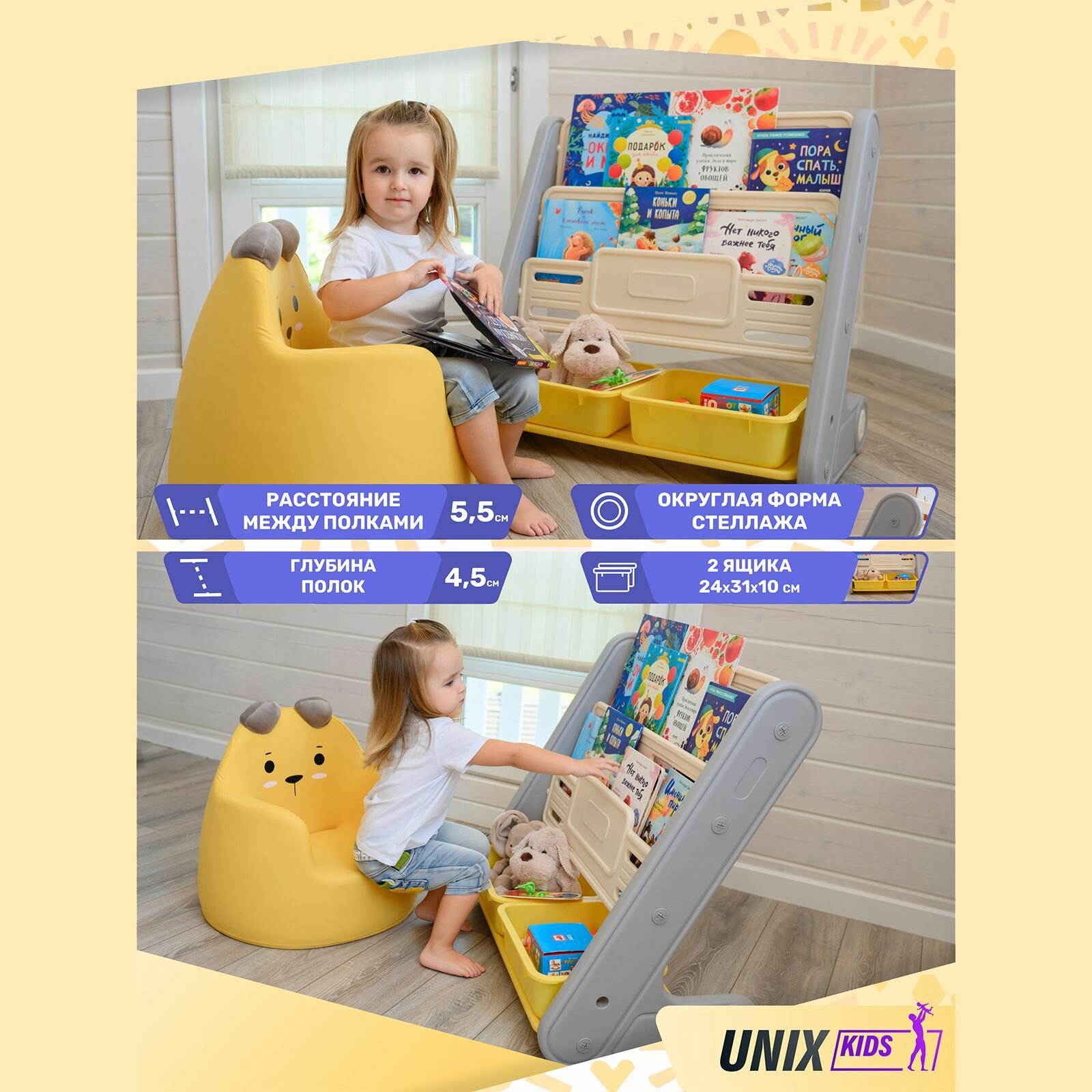 Купить Стеллаж для книг Unix Kids PPBSTS2IN1YEL