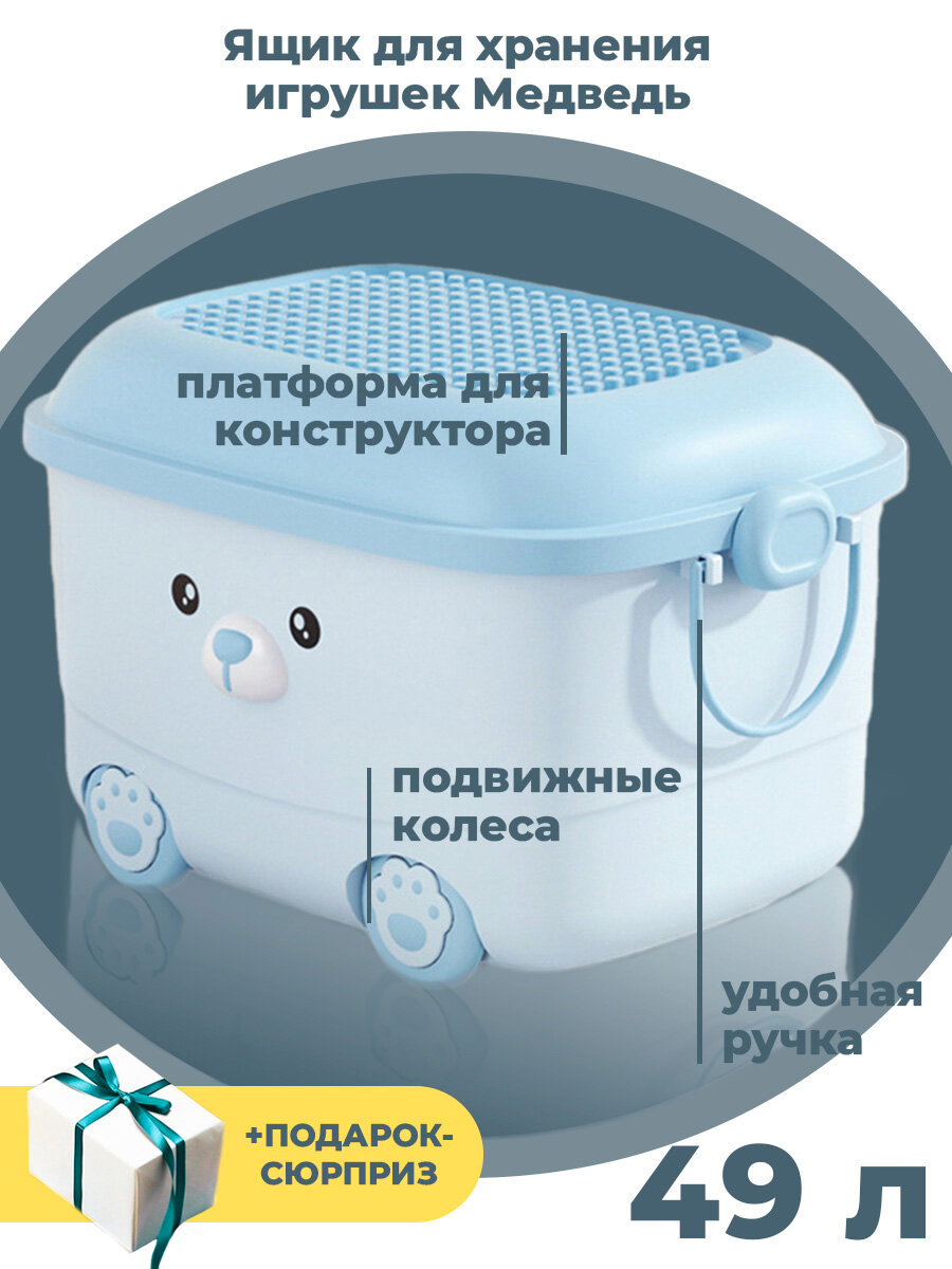 Ящик корзина контейнер для хранения игрушек Медведь + Подарок 49 литров голубой 48х36х32 см интересное: