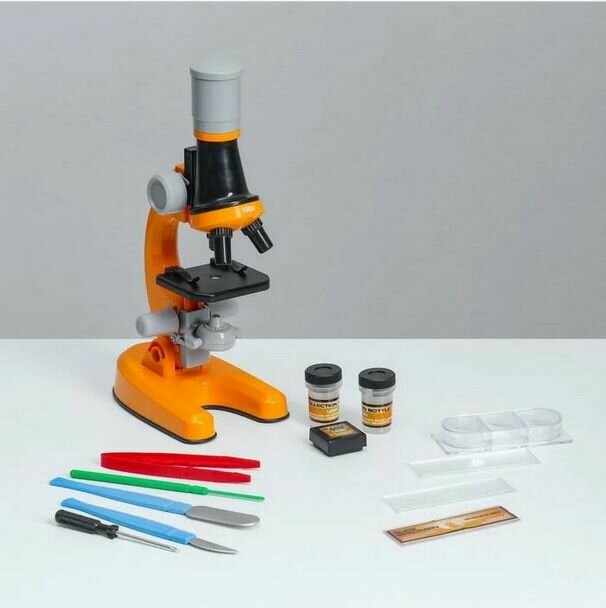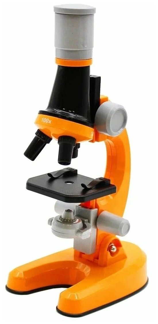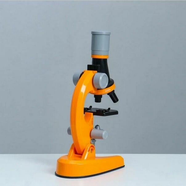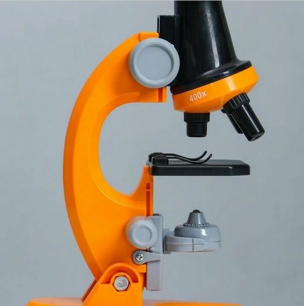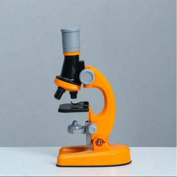Купить Детский Микроскоп Юный ученый с 3 объективами: 100х, 400х, 1200х, подсветка, цвет оранжевый / Набор для опытов / Подарок