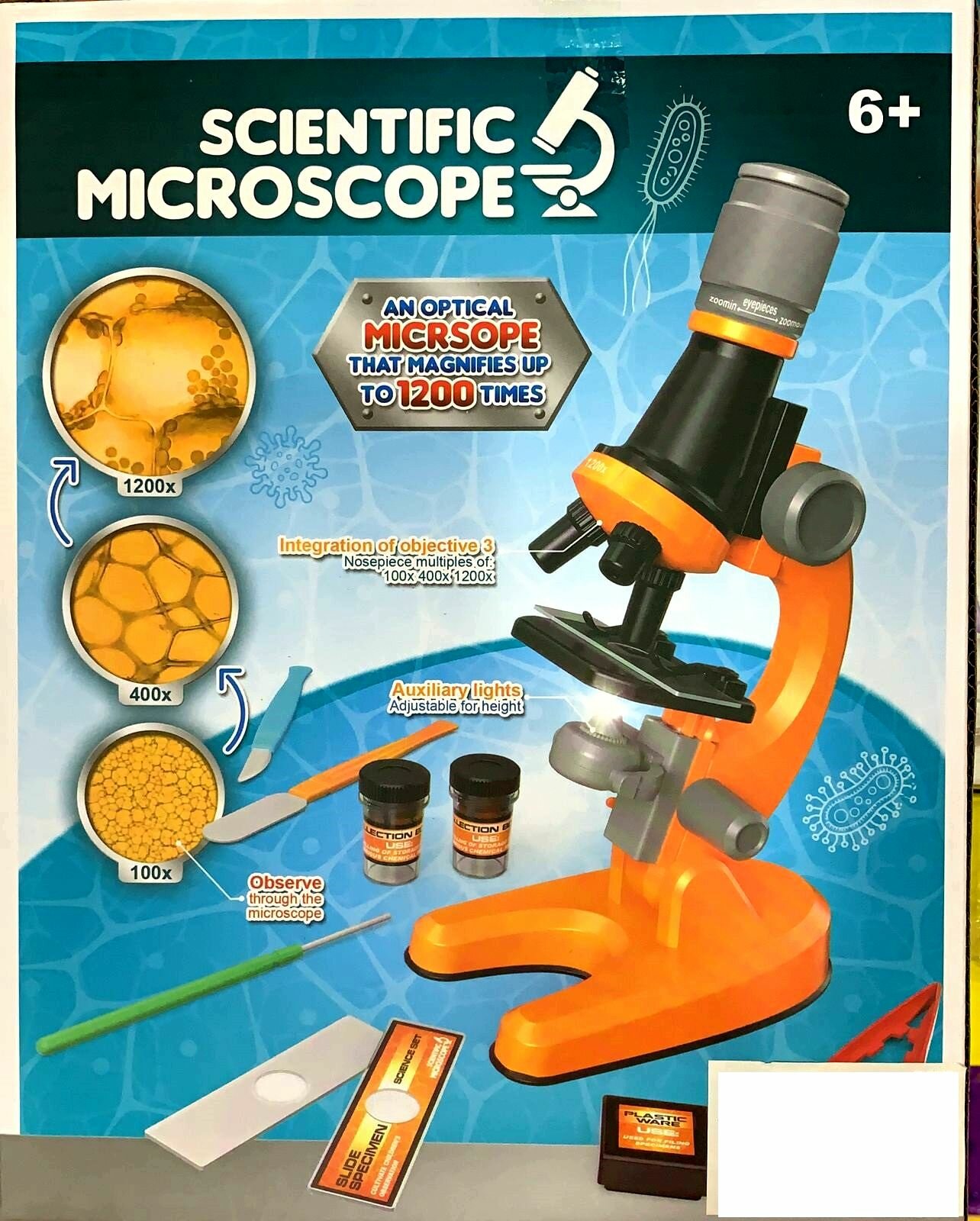 Ниже Вы можете прочитать отзывы на Детский Микроскоп Юный ученый с 3 объективами: 100х, 400х, 1200х, подсветка, цвет оранжевый / Набор для опытов / Подарок, ознакомится с подробными характеристиками, посмотреть интересные обзоры и фотографии на Детский Микроскоп Юный ученый с 3 объективами: 100х, 400х, 1200х, подсветка, цвет оранжевый / Набор для опытов / Подарок.