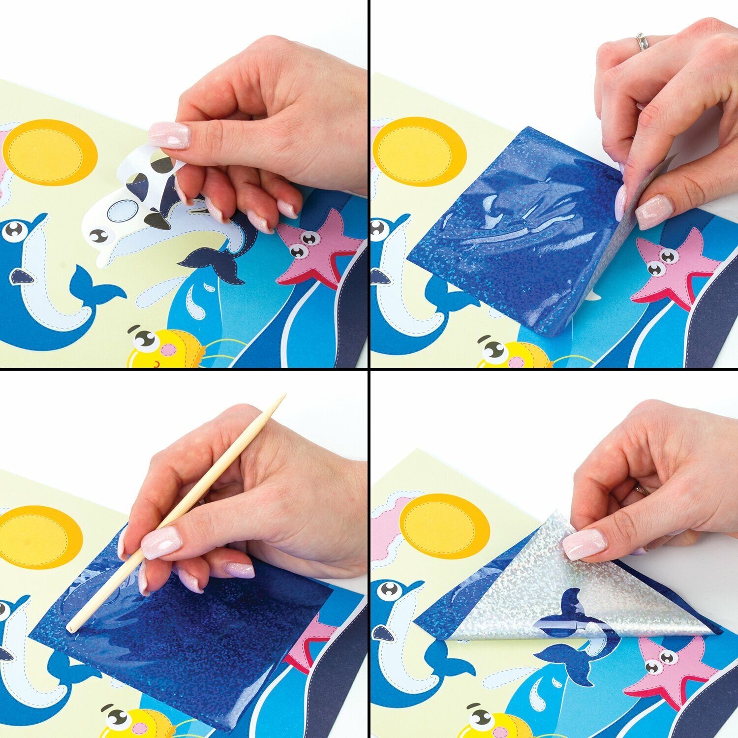 Купить Набор для творчества Аппликация из фольги, Дельфинчики, самоклеящаяся основа 20х15 см, Юнландия, 662379