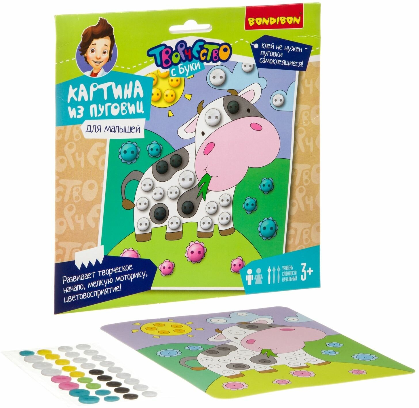 Купить Набор для творчества BONDIBON. Картина из пуговиц для малышей. Коровка ВВ3812