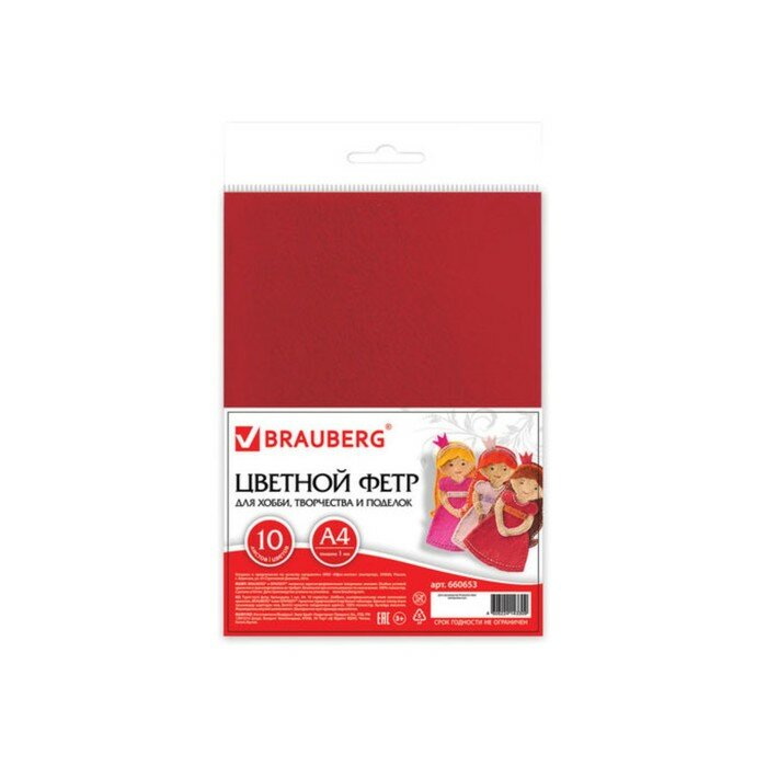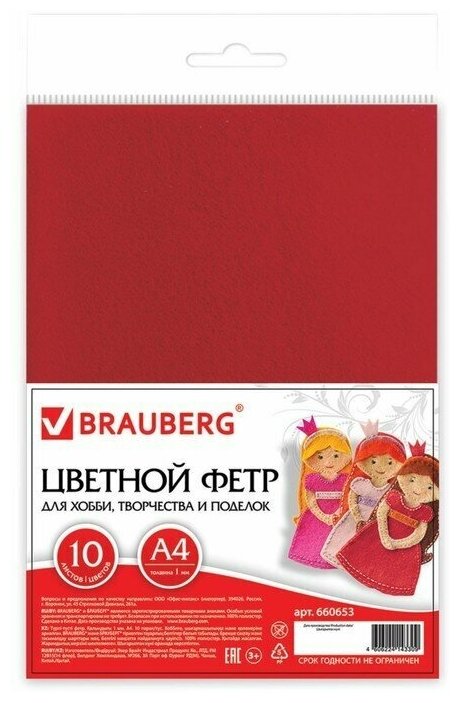 Фетр цветной 1.0мм А4 10л*10цв BRAUBERG Летний 660654 3343980