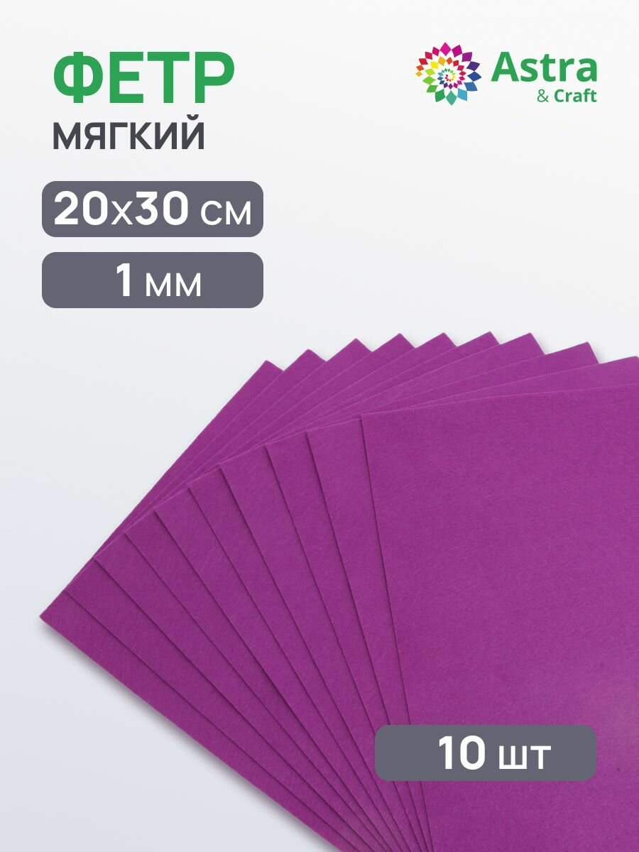 Фетр листовой мягкий 1 мм, Astra&Craft, 20х30 см, 10 шт (AF881 ультрафиолет)