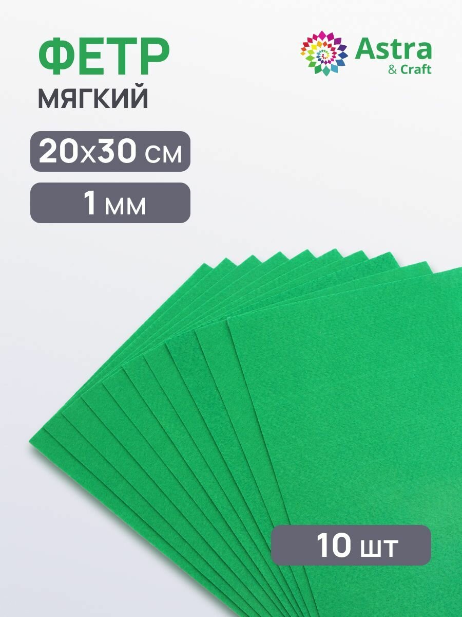 Фетр листовой мягкий 1 мм, Astra&Craft, 20х30 см, 10 шт (AF850 изумрудный)