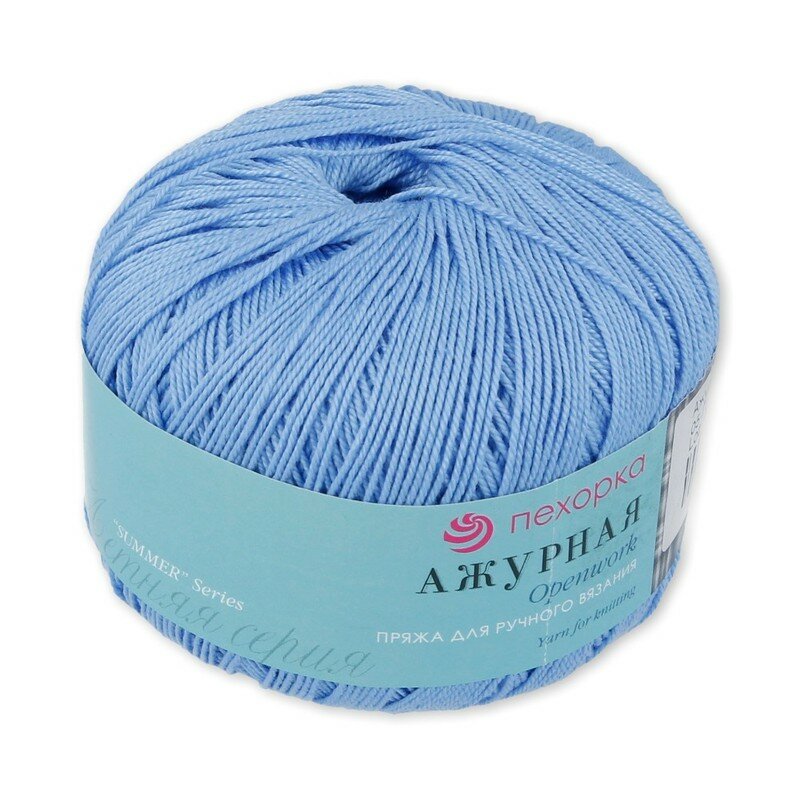 Пряжа для вязания Пехорка Ажурная (комплект 1 шт), цвет: 005-Голубой, состав: 100% - мерсеризованный хлопок, вес: 50 гр, длина: 280 м