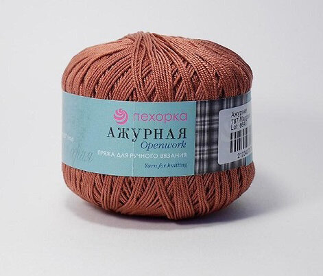 Пряжа Пехорка Ажурная марсала (787), 100%мерсеризованный хлопок, 280м, 50г, 5шт