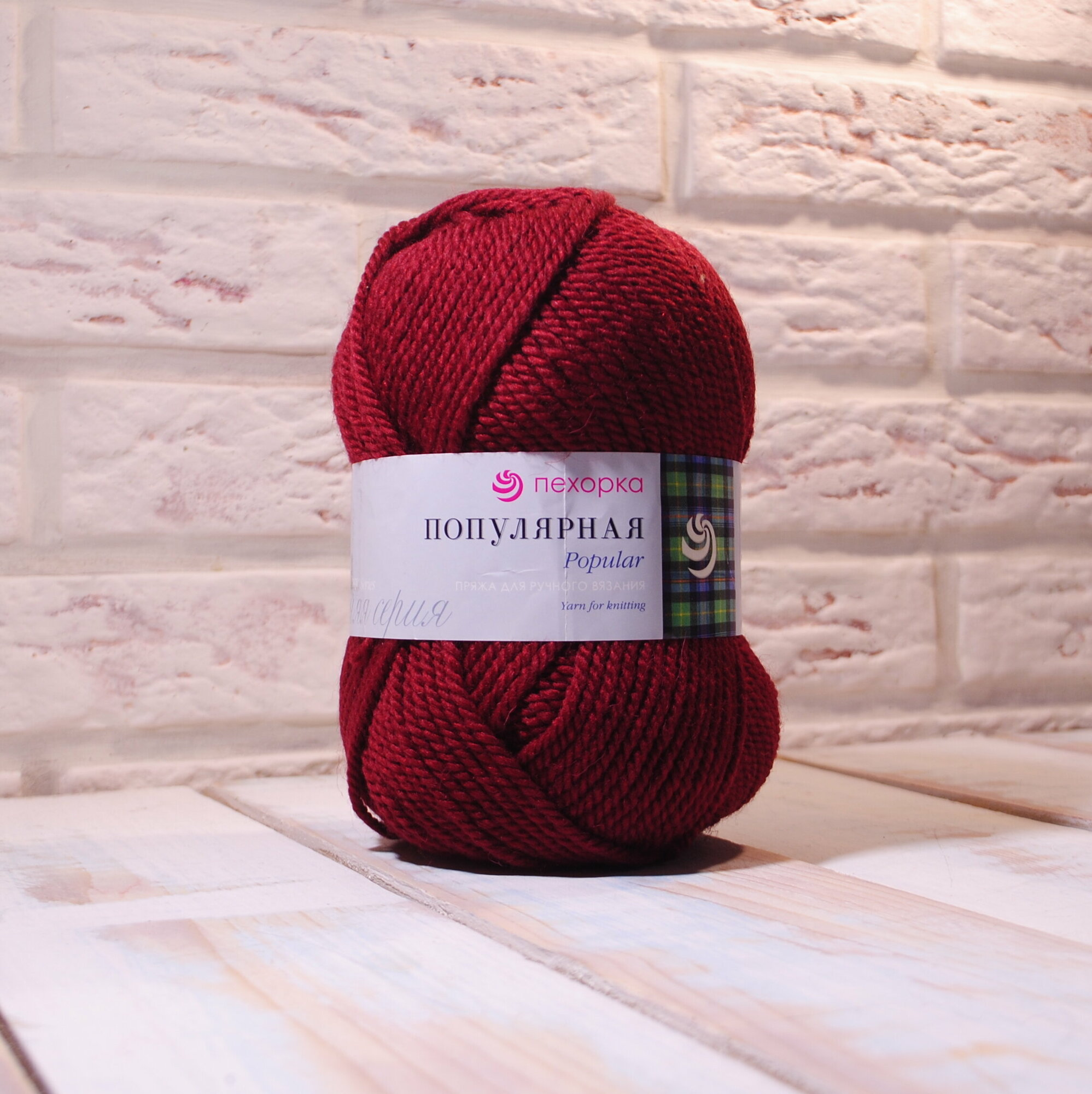 Пряжа Пехорка Популярная, 07 бордо, 100 г, 133 м, 50% шерсть, 45% акрил, 5% акрил высокообъемный, 1 шт.