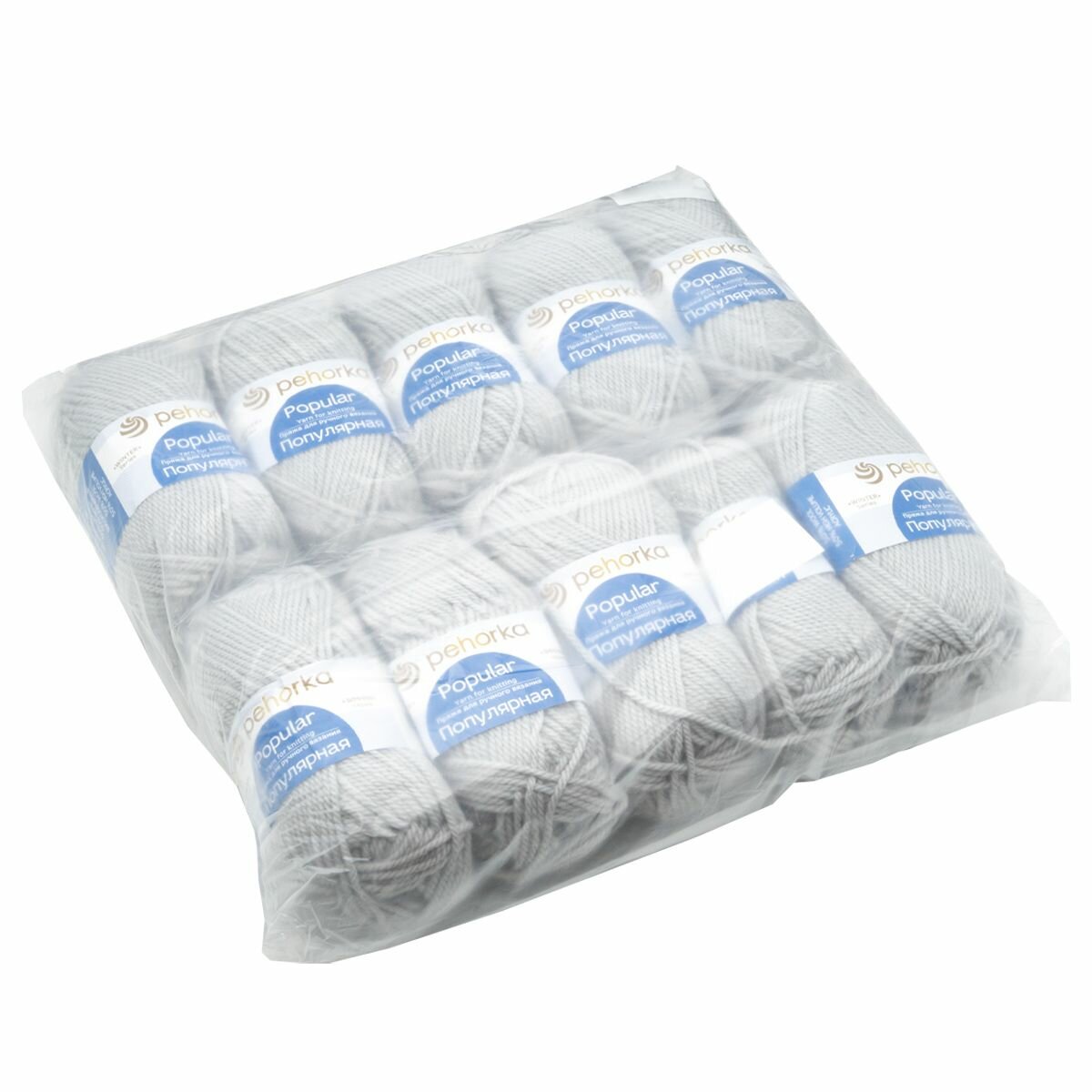 Купить Пряжа для вязания Пехорка 'Популярная', 100г, 133м (50% шерсть, 50% акрил) (08-Светло-Серый), 10 мотков