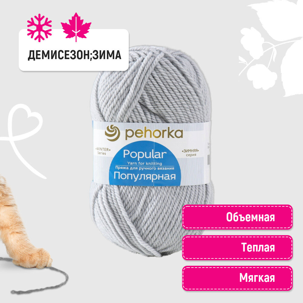 СохранитьПряжа для вязания Пехорка 'Популярная', 100г, 133м (50% шерсть, 50% акрил) (08-Светло-Серый), 10 мотков интересное: