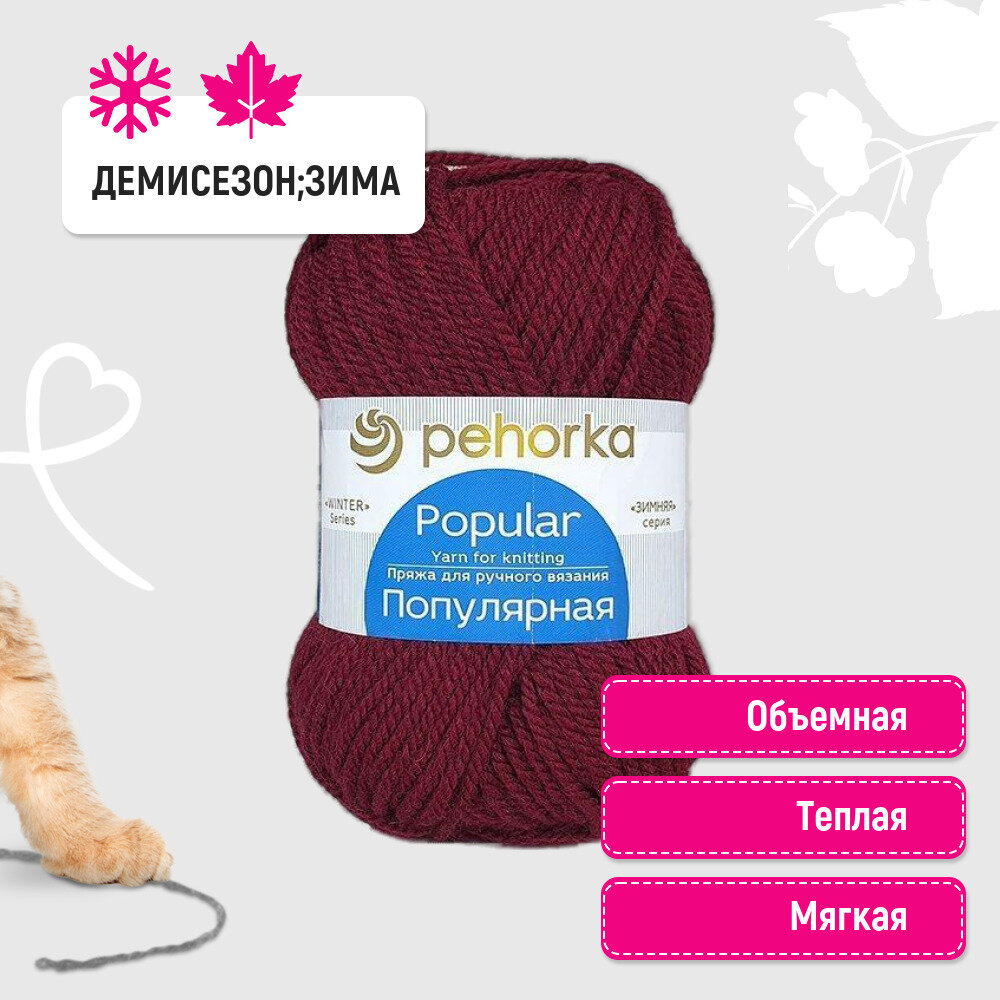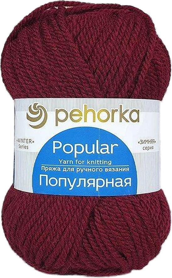 Пряжа Пехорка Популярная, 07 бордо, 100 г, 133 м, 50% шерсть, 45% акрил, 5% акрил высокообъемный, 1 шт.