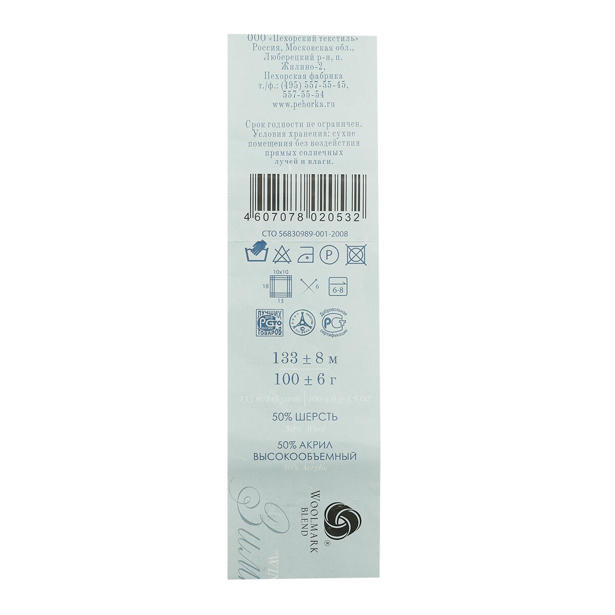 Пряжа Пехорская ПТ "Популярная" 50% шерсть, 50% акрил 100 г 133 м ± 8 м №073 айсберг