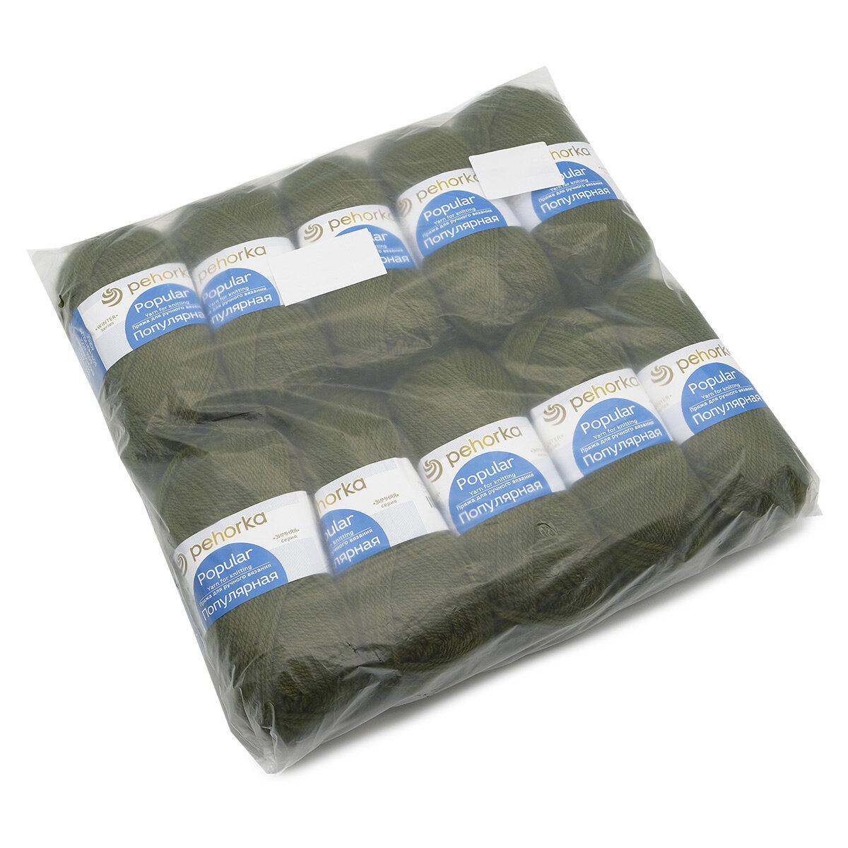 Купить Пряжа Пехорская ПТ "Популярная" 50% шерсть, 50% акрил 10 шт.х100г 133м №013 тёмно-оливковый