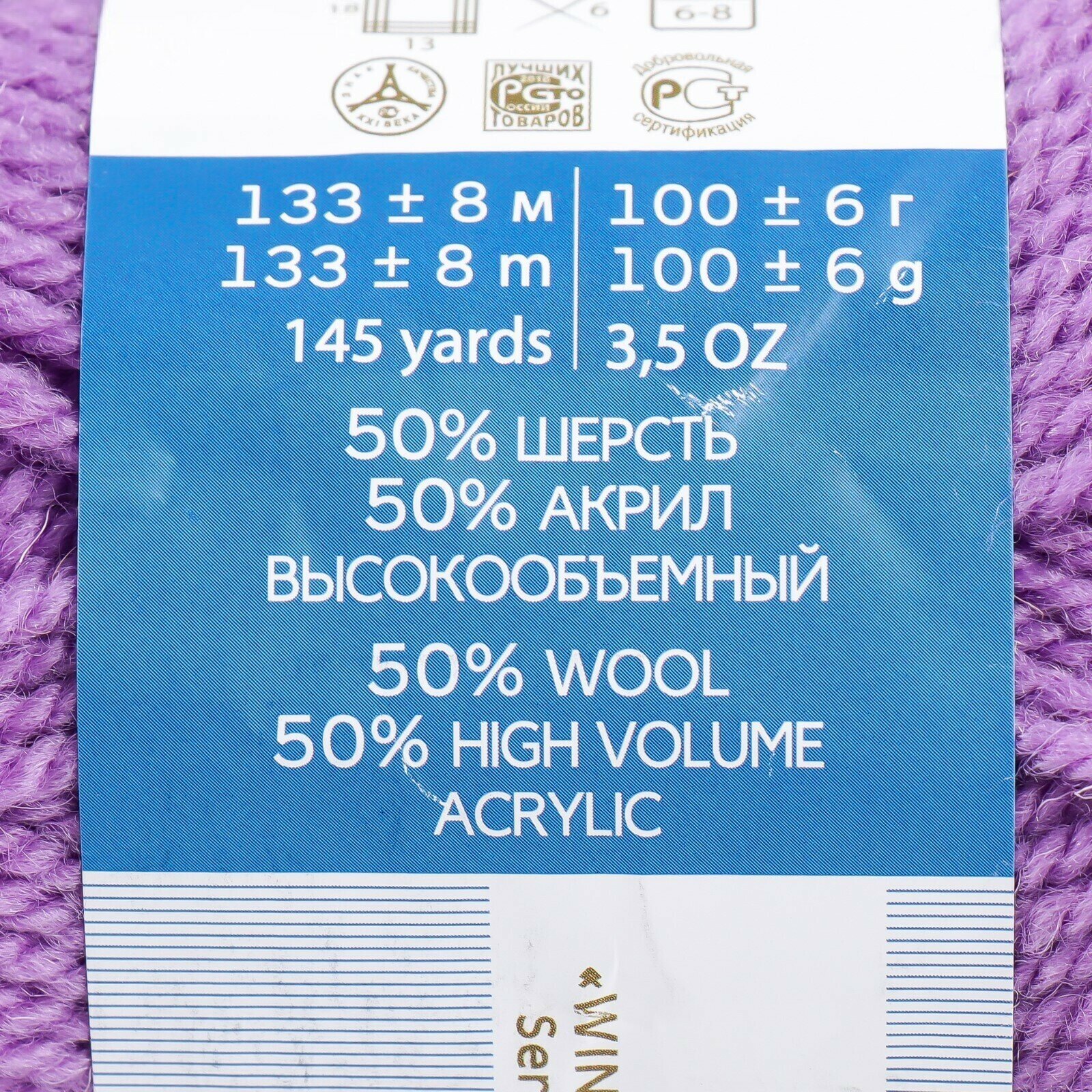 Пряжа Пехорка Популярная светлая фиалка (389), 50%шерсть/50%акрил, 133м, 100г, 1шт