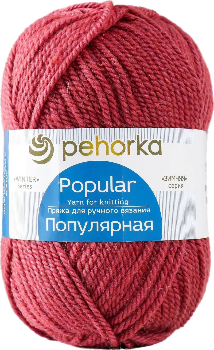 Пряжа Популярная (Пехорка), Брусника - 21, 50% шерсть, 45% акрил, 5% акрил высокообъёмный, 10 мотков, 100 г, 133 м.