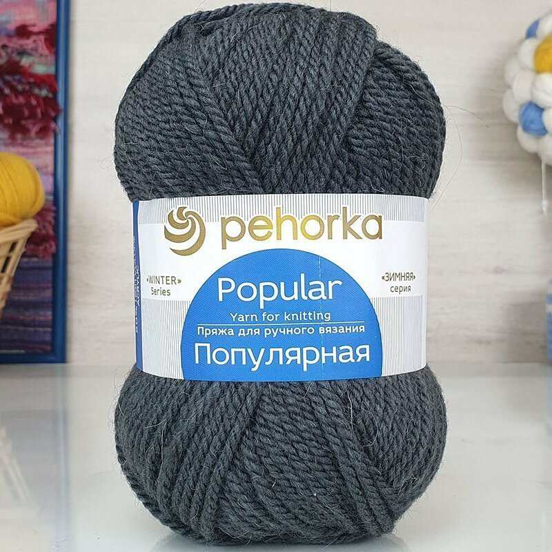 Пряжа Пехорка Популярная черный (2), 50%шерсть/50%акрил, 133м, 100г, 1шт