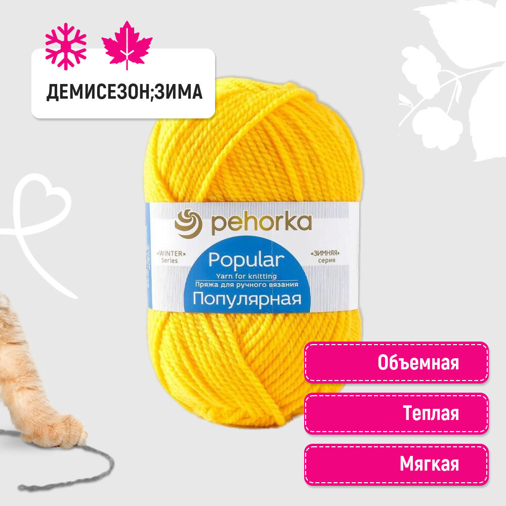 Пряжа Пехорка Популярная, 447 горчица, 100 г, 133 м, 50% шерсть, 45% акрил, 5% акрил высокообъемный, 1 шт.