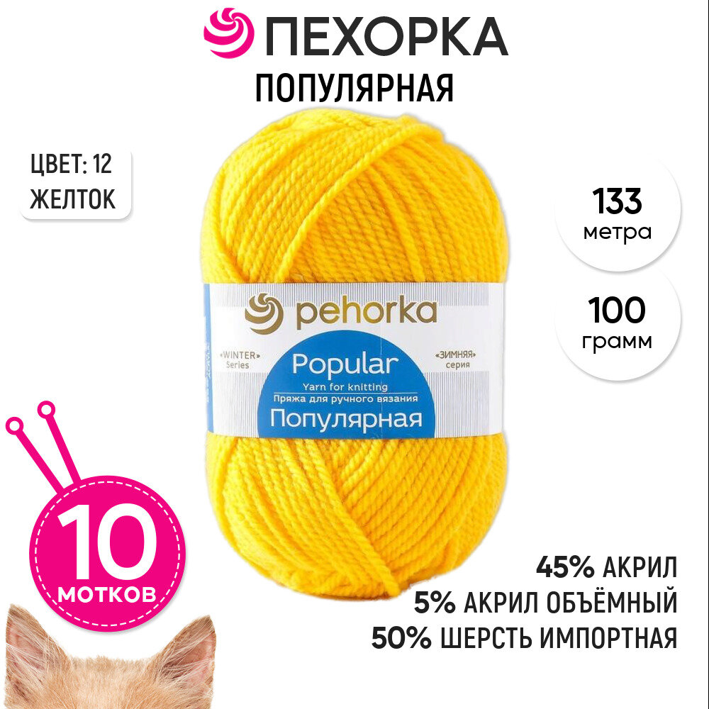 Пряжа Пехорка Популярная желток (12), 50%шерсть/50%акрил, 133м, 100г, 1шт