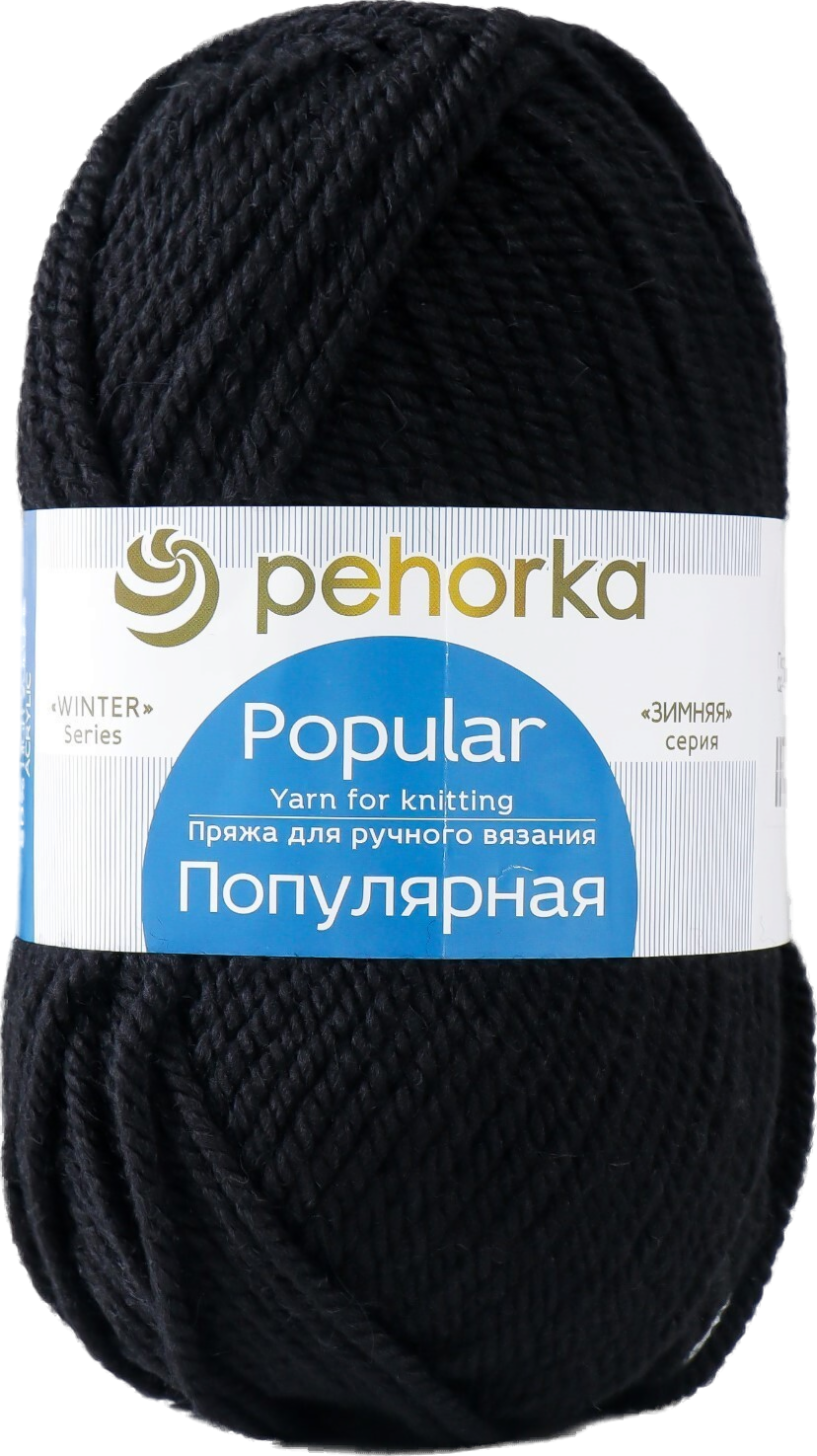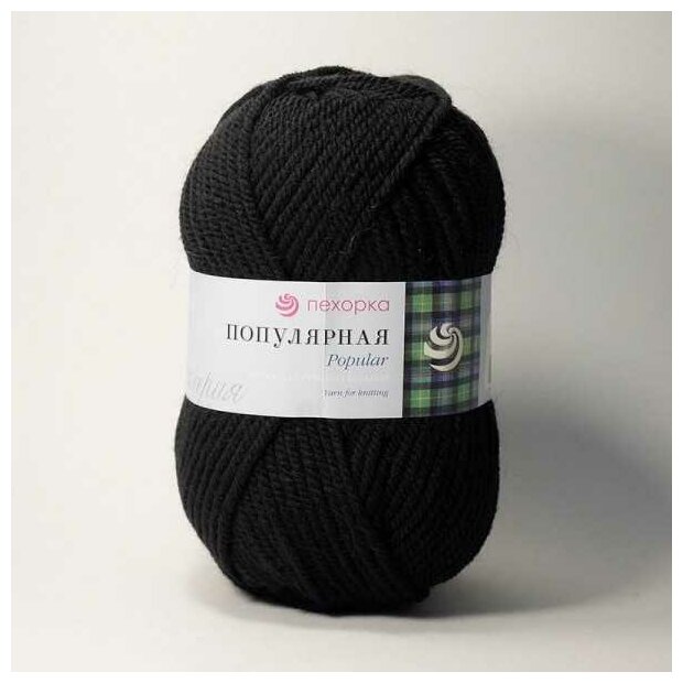 Пряжа Пехорка Популярная черный (2), 50%шерсть/50%акрил, 133м, 100г, 1шт