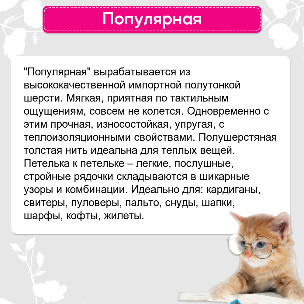 | Дополнительная информация | состав пряжи: 50% импортная шерсть, 45% акрил, 5% акрил высокообъёмный |